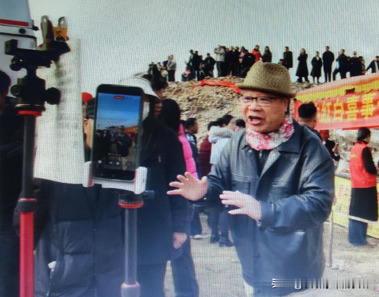 在安康刚哥的杀猪宴上,见到了很多搞直播的,可以说达到了三步一哨五步一岗的地步。 他们还都各有特点,有的在谈线路:从安康坐31路车到优胜路口,向西南方向走大约500米左右就到了;有的在转播杀年猪:看年猪已经杀好了,正在分割,将要经过大厨的烹饪端上宴席了;还有的正在描述热闹:说恒口的杀猪宴人山人海热闹非凡,就缺你一个了,赶紧来吧! 在这热热闹闹的直播大军中,有一个男人可谓特别突出,他把直播间设在了房车顶上,既可以眼观八路耳听八方视野开阔,还没有人能干扰到他,真是棒极了。 可是我最佩服的,还是一个老爷爷,人家对着直播镜头,一首首的诗歌仿佛不假思索地就说了出来,一看就是文化人。再一看才发现,原来人家有两个手机支架,前面的夹着手机正在直播,后面还有一个架子夹着一个大本子,那上面可不正是老爷爷的诗嘛!嘿嘿!