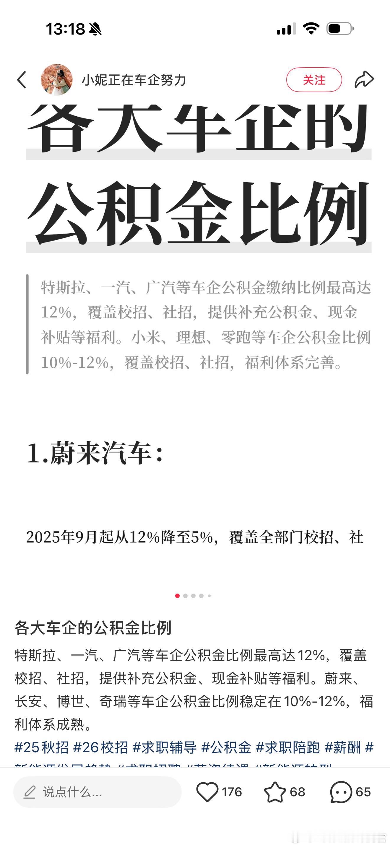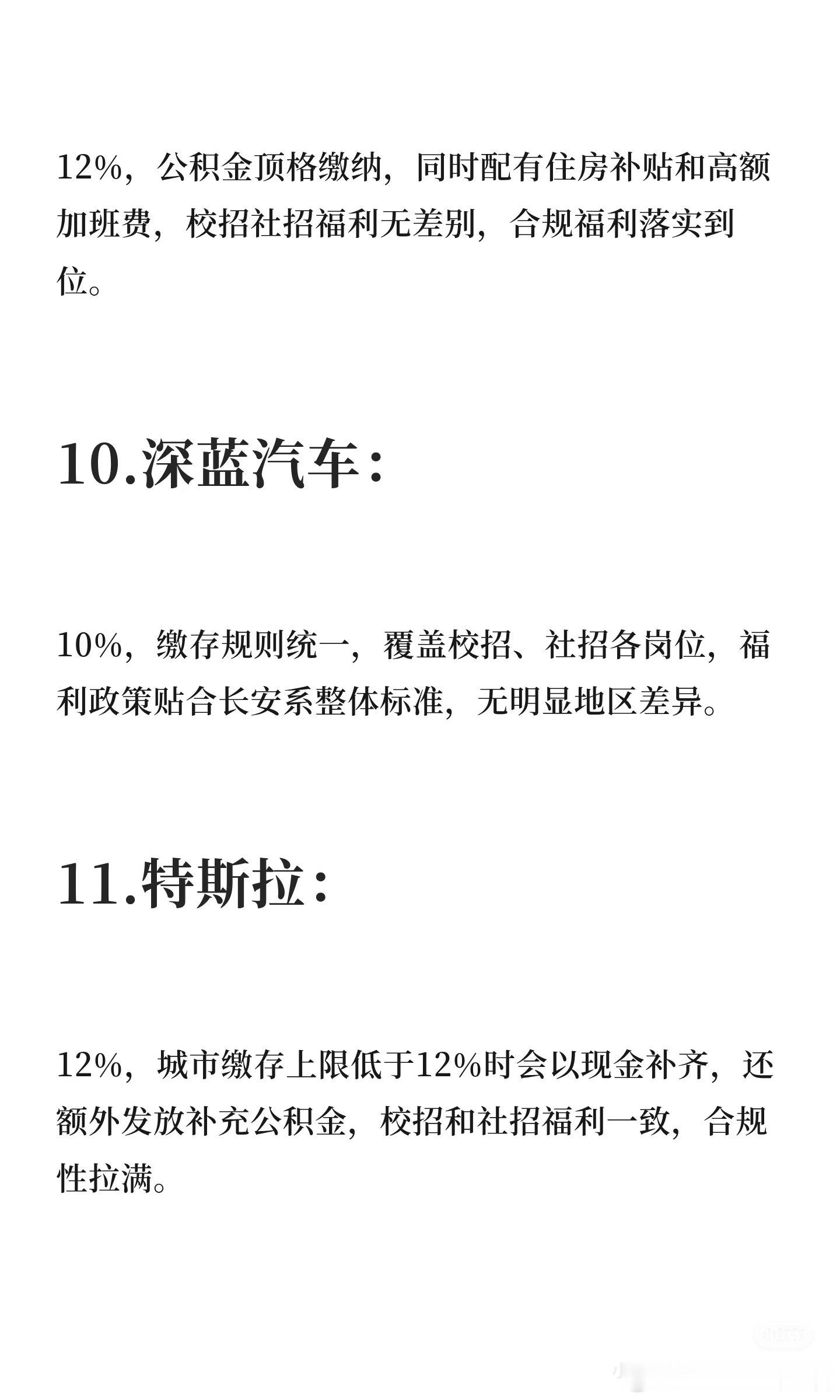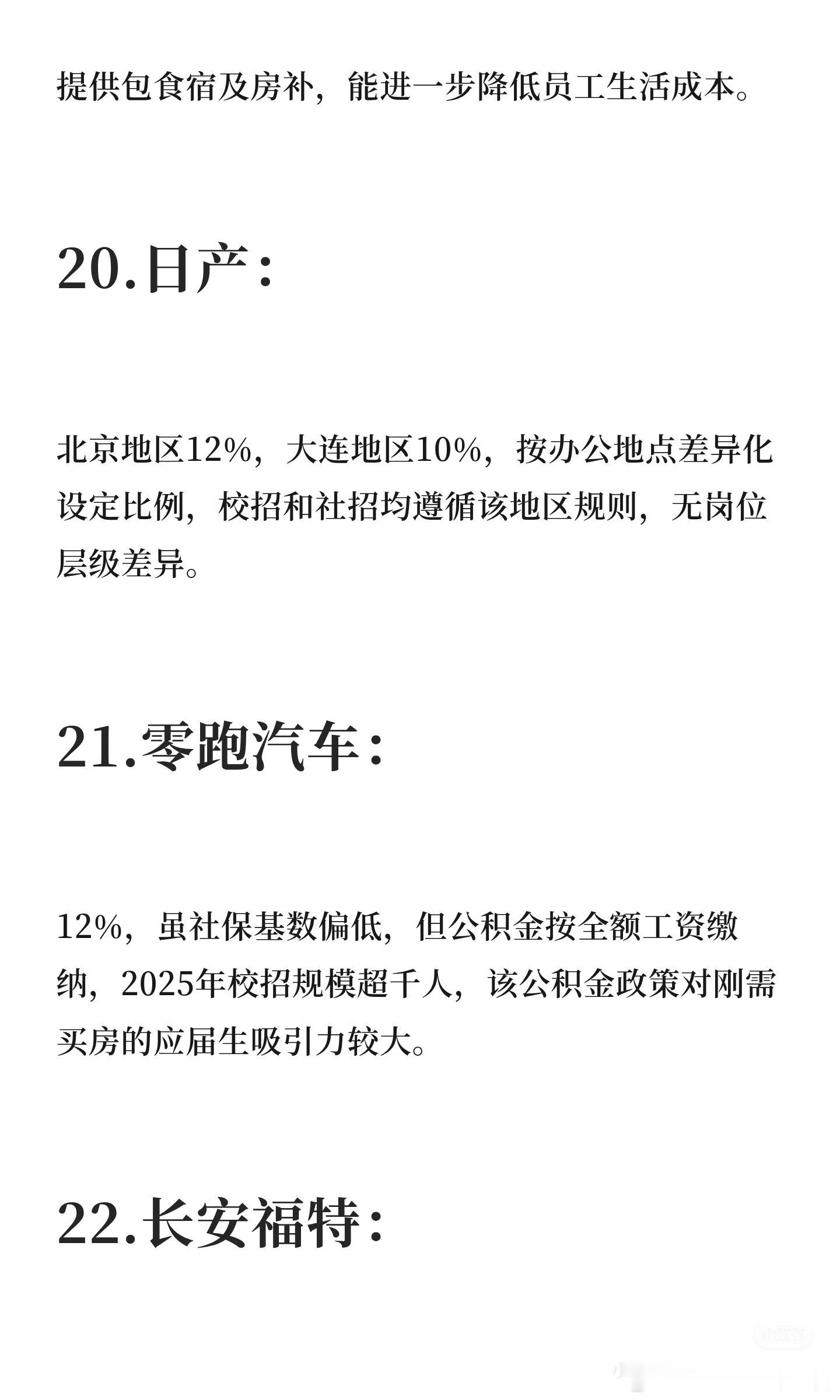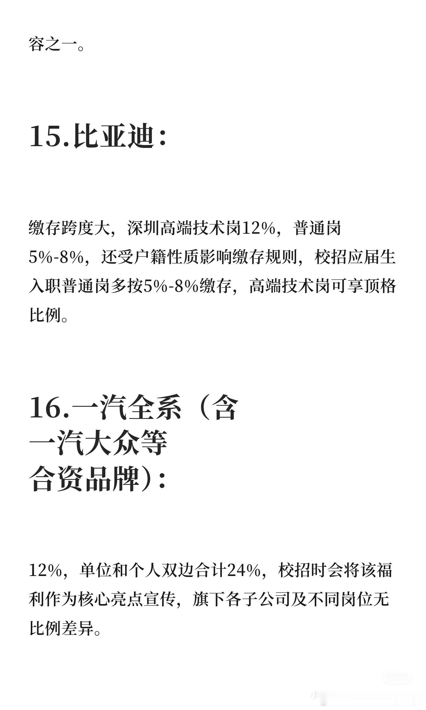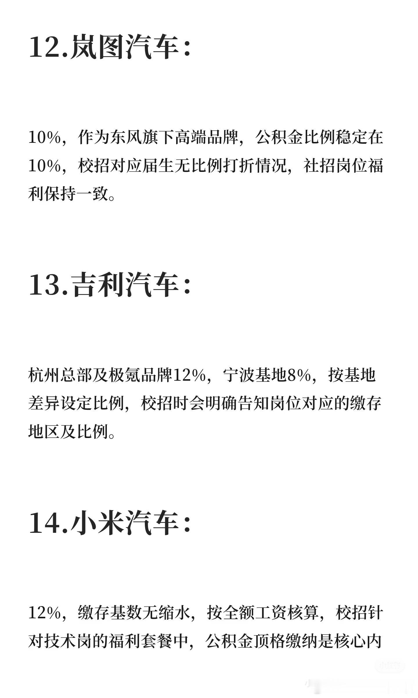网友整理的各大车企的公积金比例,不过我看评论区有些车企员工说有的不太对