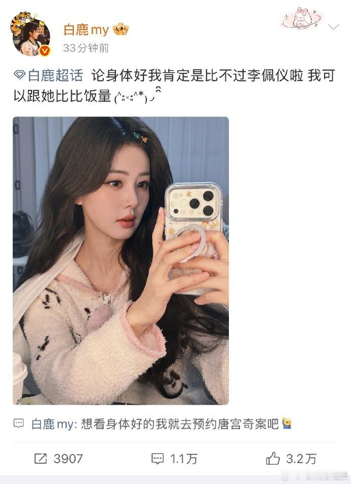 白鹿回应身体健康状态,坦诚的态度满是真实感,白鹿说论身体肯定比不过李佩仪,直白的对比尽显相处时的轻松与默契。白鹿说论身体肯定比不过李佩仪白鹿回应身体健康状态