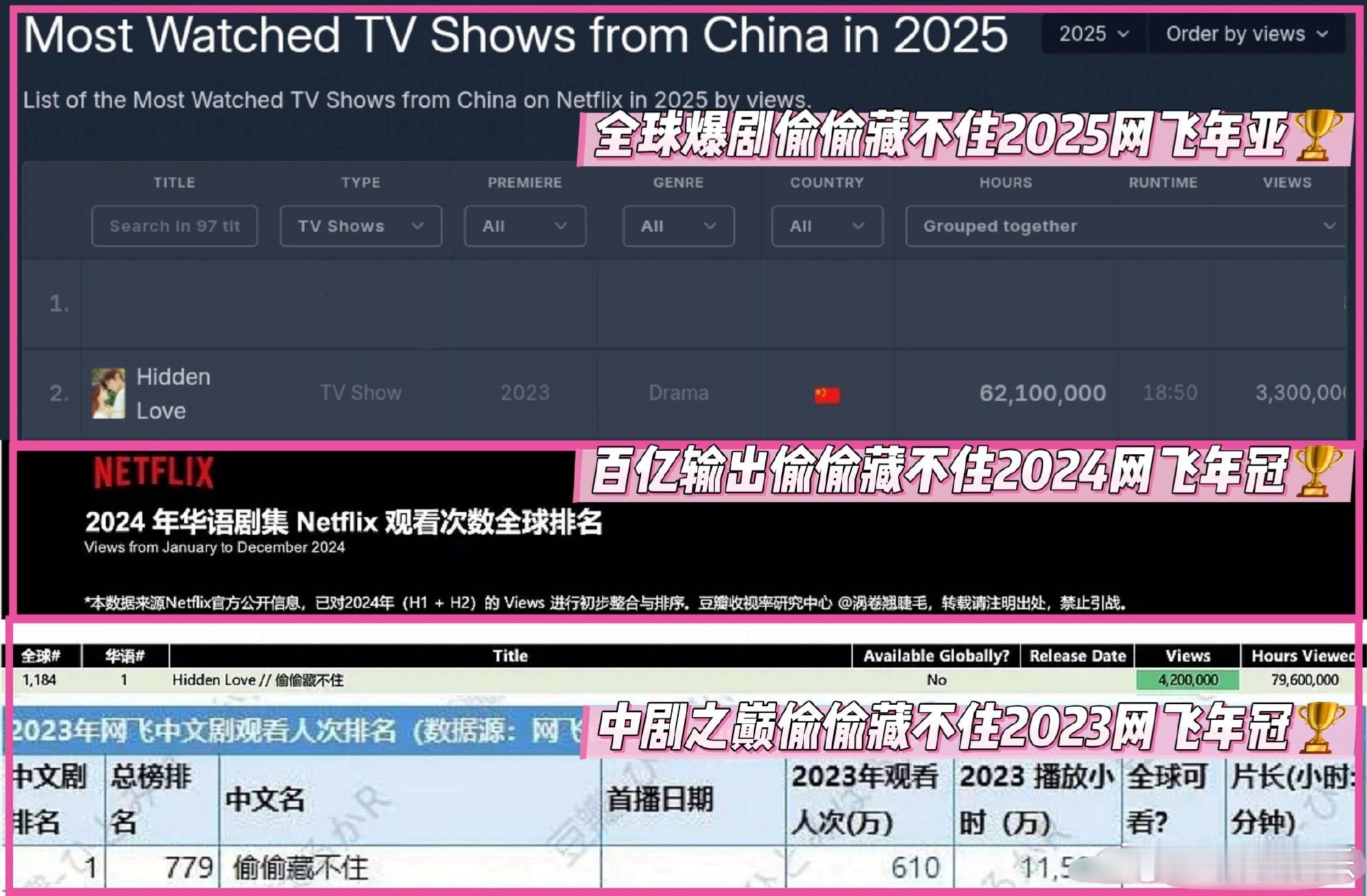 网飞官方公布的中剧观看数据排名,赵露思《偷偷藏不住》连续三年获得巅峰成绩,海外好火啊,长尾好剧值得!