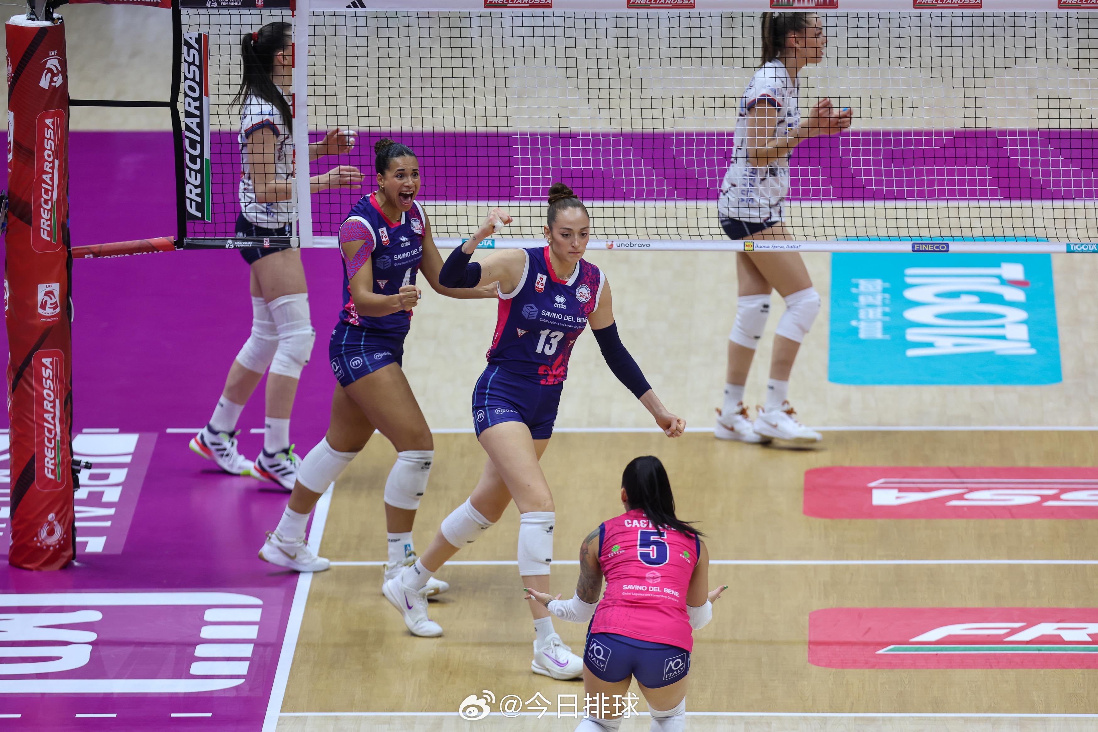 【女排意大利杯 斯坎迪奇3比2基耶里晋级决赛】北京时间25日凌晨,都灵,2025-2026女排意甲 意大利杯半决赛第二场,斯坎迪奇以3-2(25-22, 22-25, 25-20, 22-25, 15-8)力克基耶里,北京时间今晚22:00将与科内利亚诺争夺冠军。安特罗波娃25分(拦5),A·斯金纳21分,韦策尔11分,C·波塞蒂10分,格拉齐亚尼9分;内梅特25分,昆兹勒15分,内尔维妮14分,安娜·格雷9分,切库拉耶芙7分。