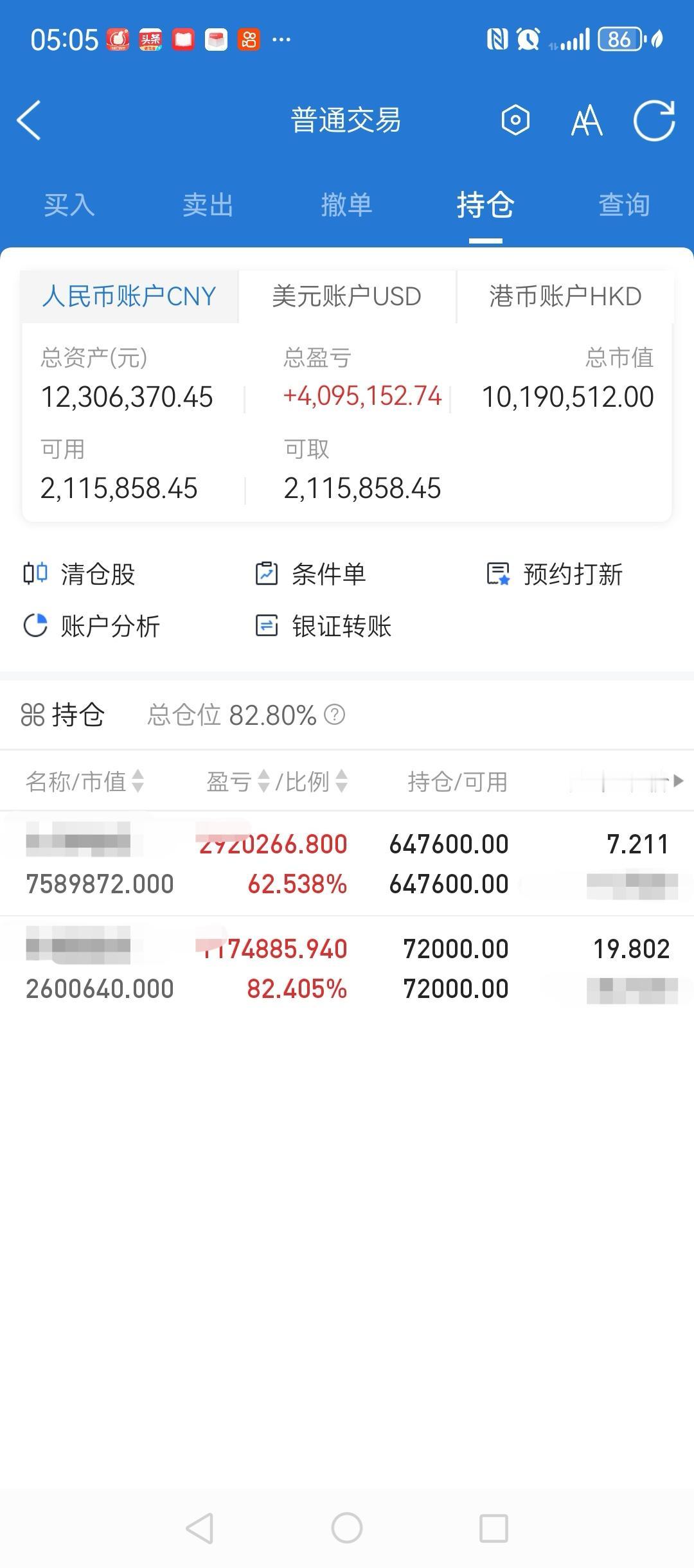 本周的收益率已经突破了450%,累计收益也稳稳的站在了1000万的上方。 本周卖掉了一个股票,属于电子元器件板块的,腾出了200多万的现金。账户中剩下的两个股票都是人形机器人板块中的个股。周四的时候,收益率达到了463%,周五账户稍有回落。 本周市场整体还在震荡之中,该账户的收益却开始加速。下周这一进程将会继续,这是主升的节奏。 2024年之后,我的理念是,好价格买入好股票,不赚钱不卖,甚至不赚大钱不卖。 具体的说,就是择时买入处于上升趋势,且相对低位,交易相对活跃的主流行业的核心龙头个股,不赚钱不卖,甚至不赚大钱不卖。