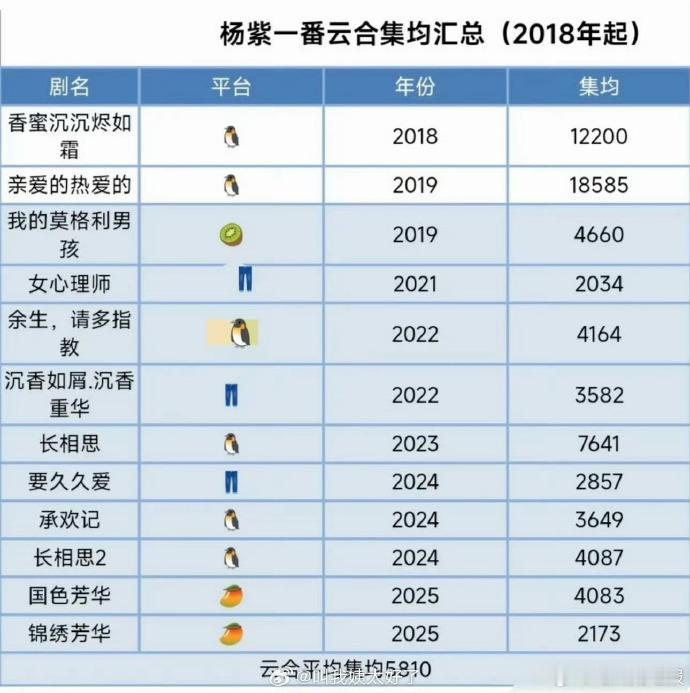 杨紫一番云合集均 5810,集均数值成为其作品热度的有力证明,杨紫一番云合集均稳步走高,数据体现长久的市场吸引力。杨紫一番云合集均5810杨紫一番云合集均