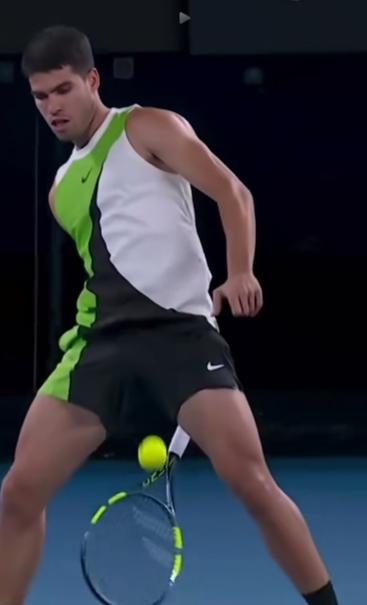 阿尔卡斯这个胯下击球的动作太经典了,阿尔卡斯不但球技出众,长得也是帅气,这一身绿色球服也设计经典,完美展示了阿尔卡斯健美的身材!