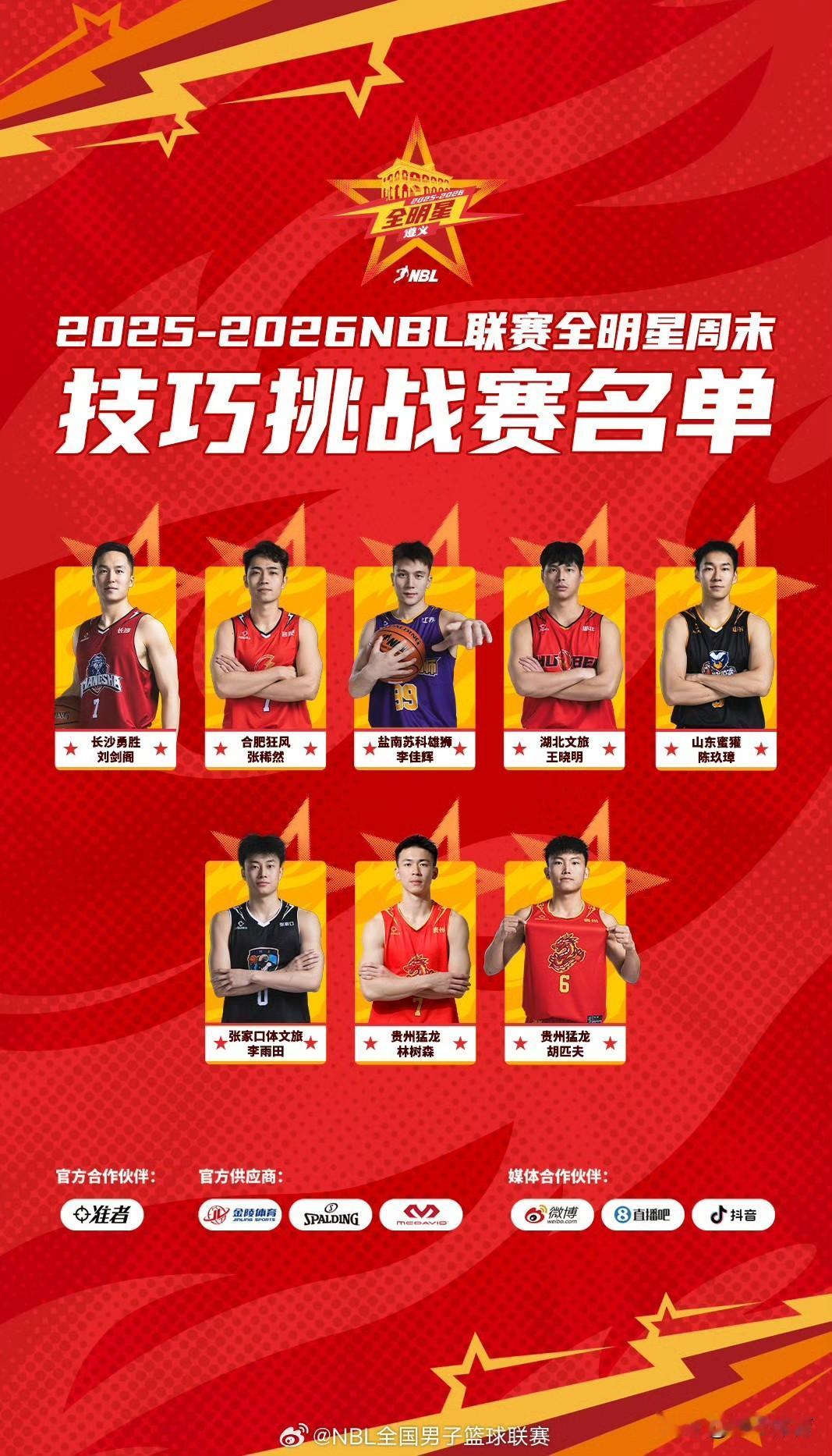 2026NBL联赛南北明星队名单出炉! 南区明星队名单: 票王:王晓明(湖北) 刁展望,阿诺斯克(香港)、刘剑阁(长沙)、尼文·格洛弗(江西)、郭晓鹏(湖北)、赖益烨,孙椿棚(上海)、乔丹·霍华德(杭州)、林树森,李展帆,李云开(贵州)。 北区明星队名单: 票王:王子麒(石家庄) 刘子豪,张稀然(合肥)、翁金郎(石家庄)、李佳辉,于翔(江苏)、诺亚·迪克森,满奕呈(安徽)、陈玖璋(山东)、冯博帆,安东尼奥·霍尔德(焦作)、李雨田(张家口)。