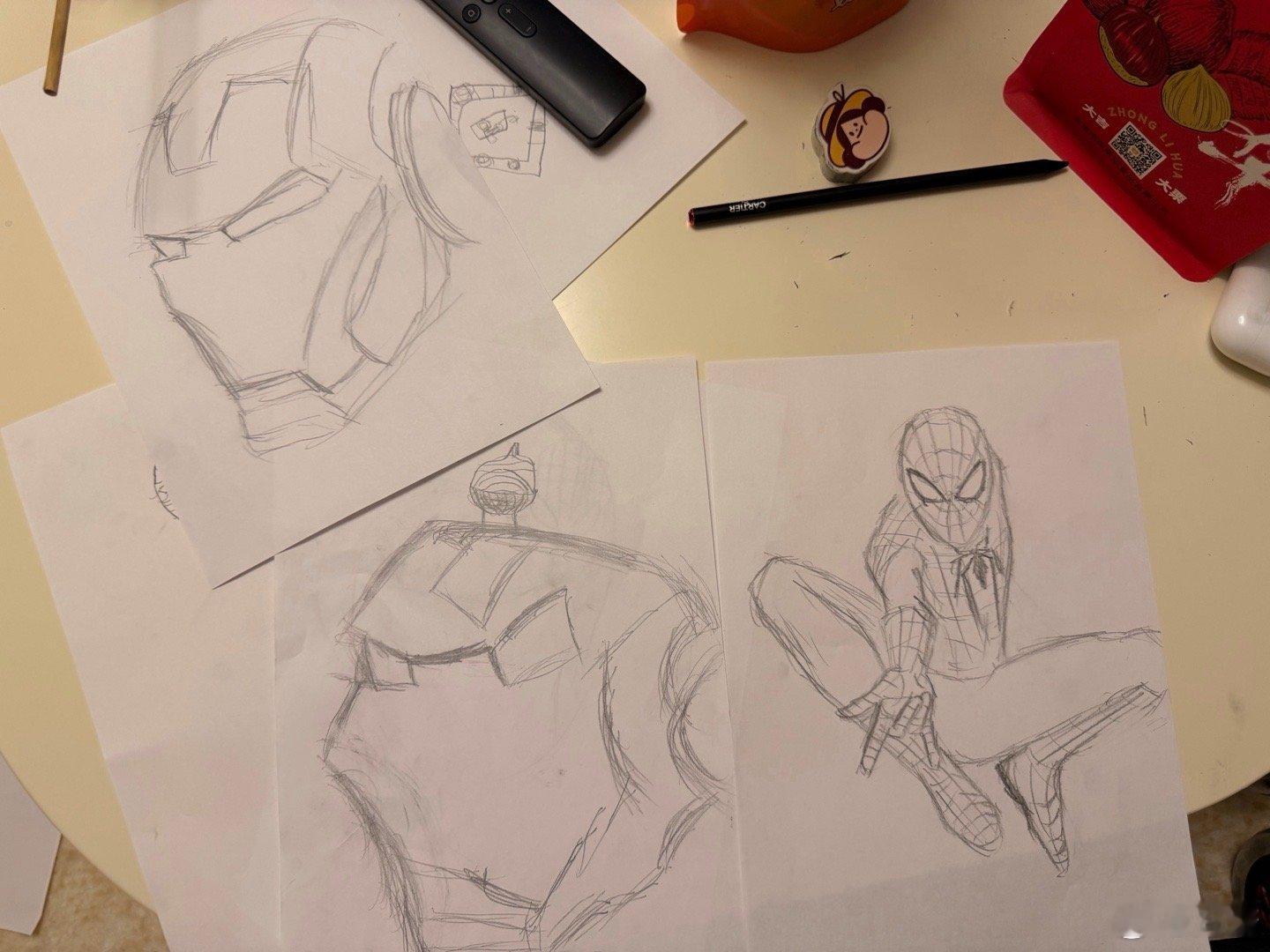 现在没点技能都哄不了小孩了,说一块画个画玩一下,结果小猫小狗人家不要,必须钢铁侠蜘蛛侠才行,还好能画得出来保住了颜面