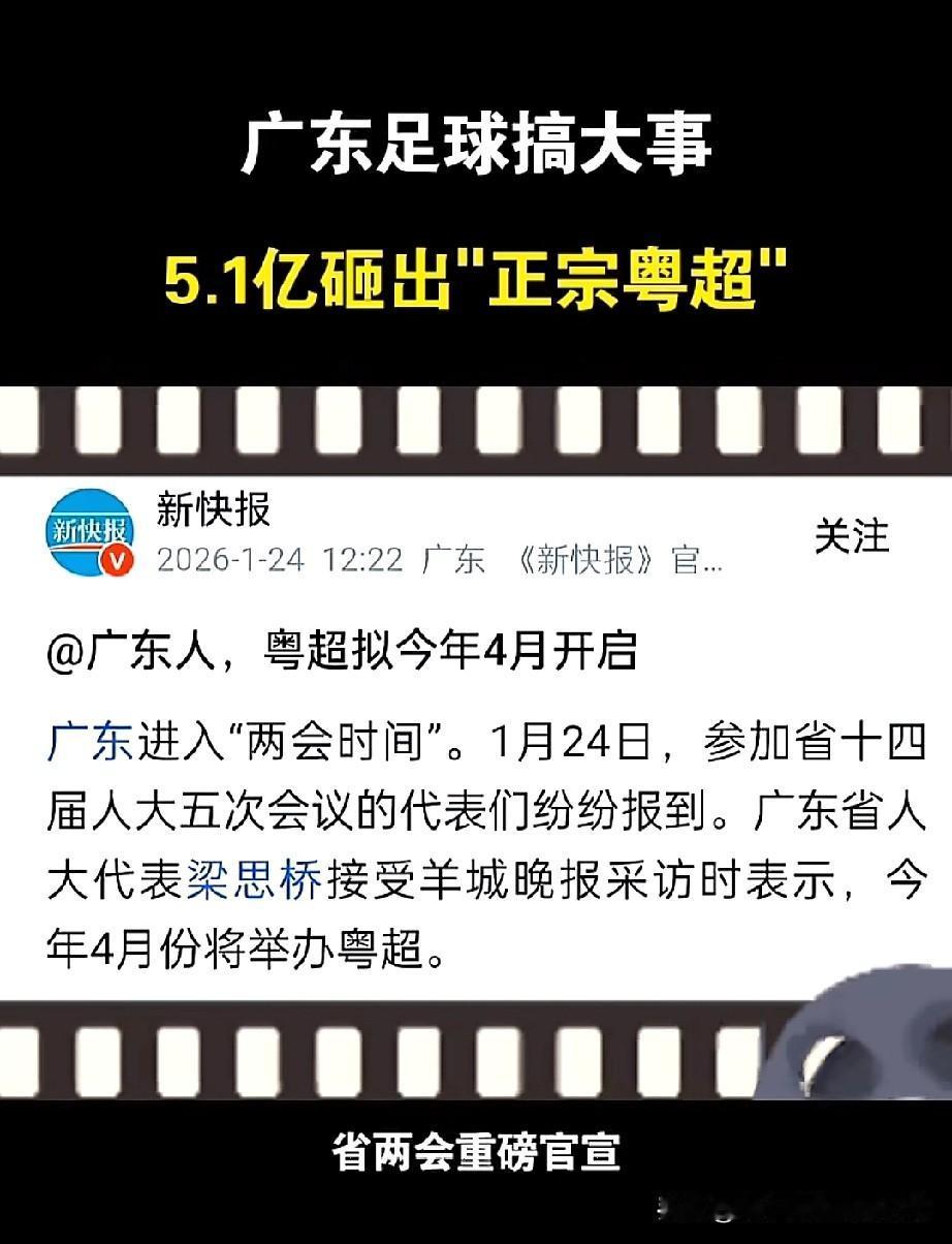广东砸5.1亿搞“粤超”! 广东足球要搞大事了!省两会官宣:今年4月启动“粤超”联赛,财政直接砸5.1亿专项经费,从4月燃战到11月,覆盖全省21个地市。 消息一出,足球圈直接炸锅。有人拍手叫好:“终于有人敢花钱搞青训了!”也有人泼冷水:“5.1亿够买几个外援,但能救活中国足球吗?” 作为老球迷,我太懂这种纠结了。我们看了太多“烧钱打水漂”的闹剧,但这次不一样——粤超主打“城市联赛+社会资本”,不仅要让湛江、梅州这些足球之乡的草根球队有球踢,还要带动体育消费、盘活球场资源。 这5.1亿,不是买球星的门票,是给广东足球扎下的根。你觉得粤超能成为中国足球的“救命稻草”吗?评论区聊聊你的看法!
