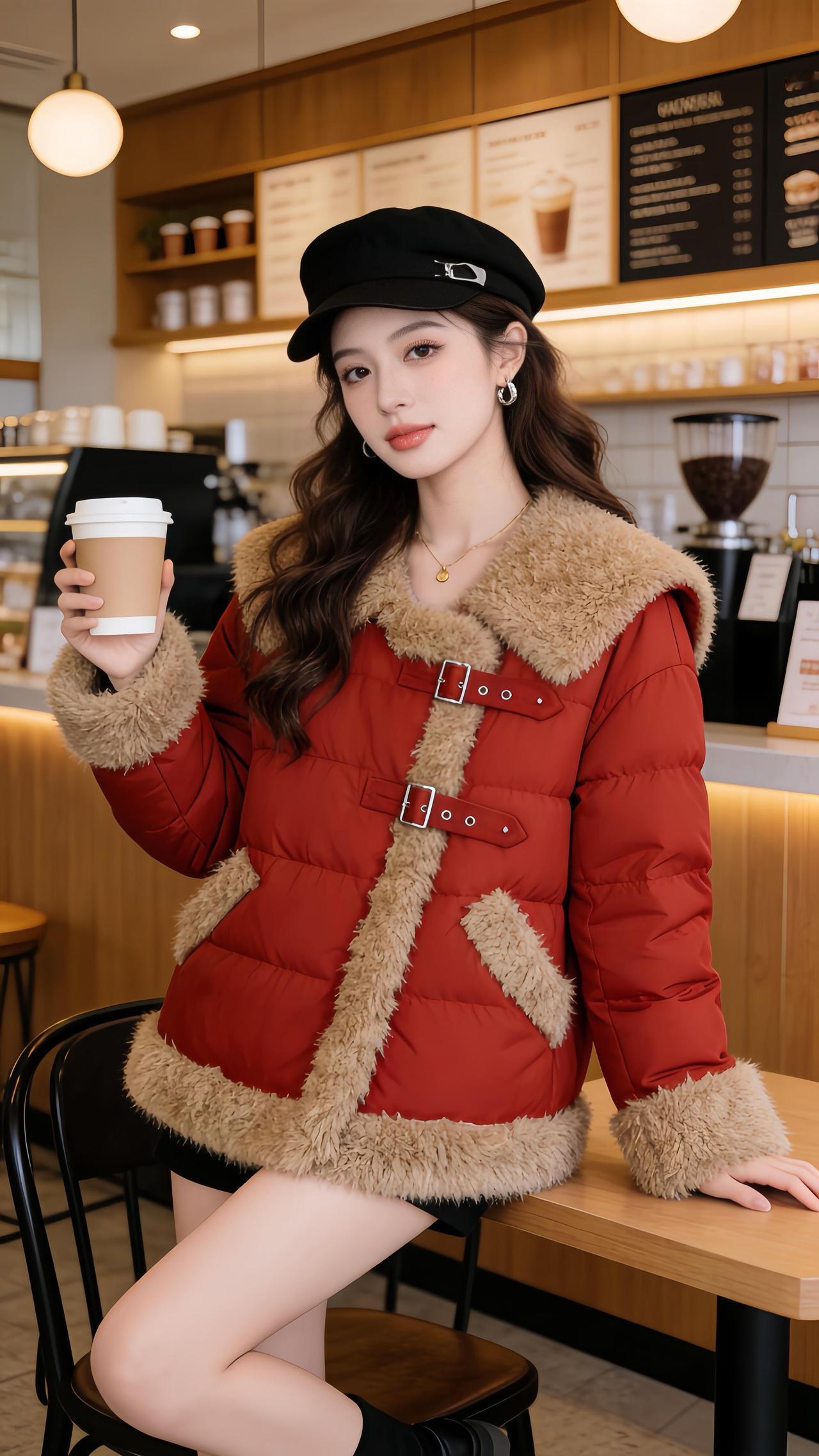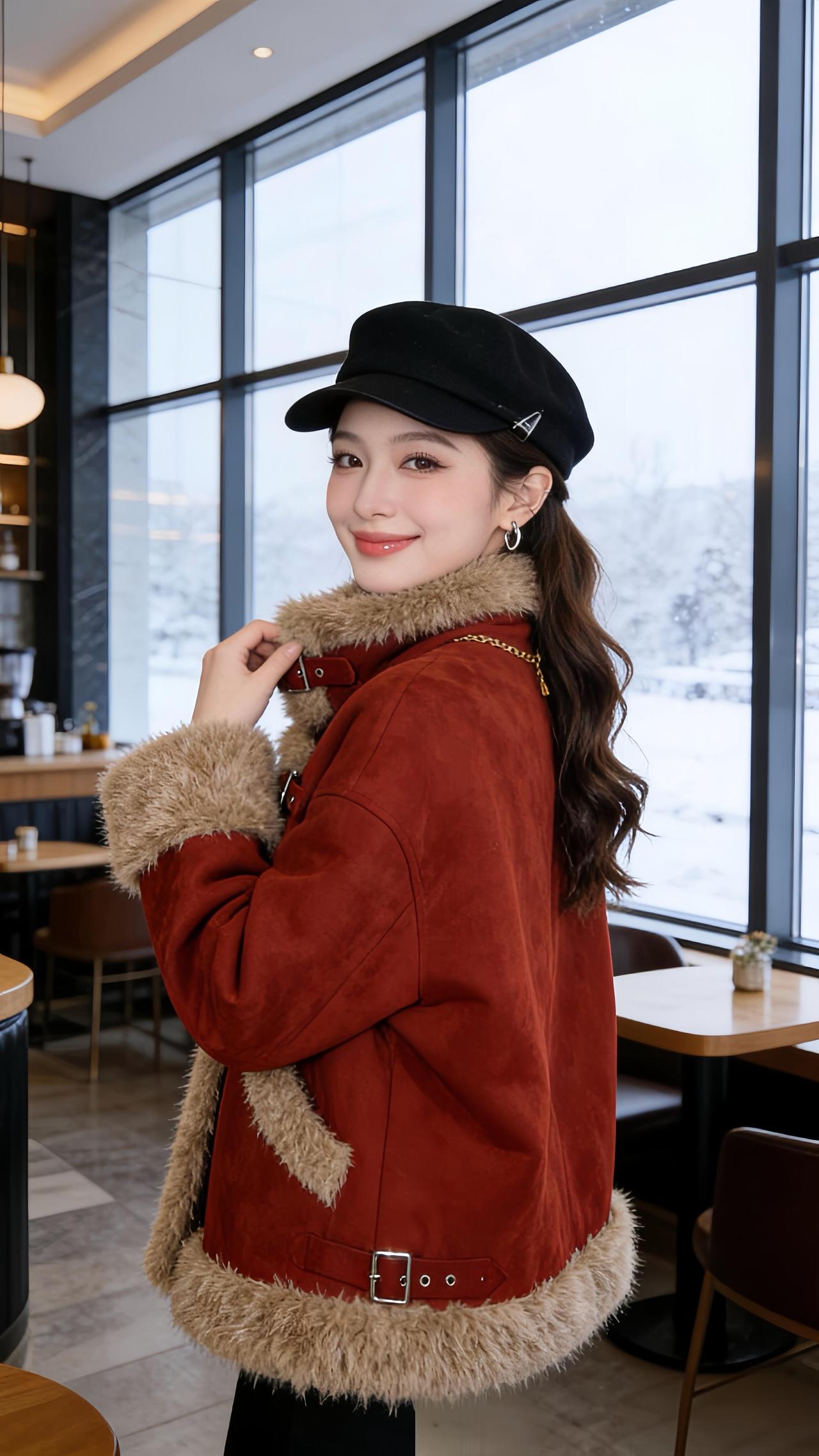 冬日穿搭指南毛绒外套+黑色贝雷帽温暖又时尚红色温暖时尚潮流穿搭