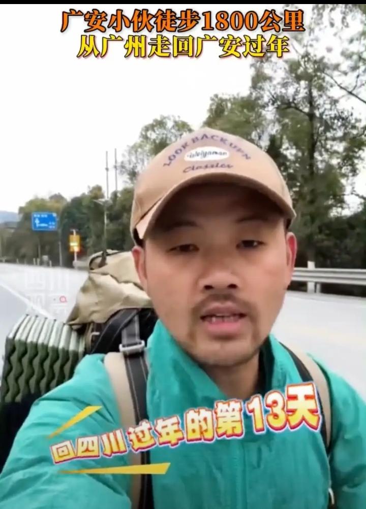 要说回家过年有仪式感,还得是我们四川人。前段时间有一个徒步从四川泸州到深圳的老乡经过几个月已经到达目的地;最近又来了一个从广东打工回四川广安的老乡。其实大家差的都不是那张车票,主要的就是希望沿途看看祖国大好河山,更重要的是感受那种浓浓的年味。 想过去交通不发达的年代谁家走亲访友不是走路去?这是刻在我们灵魂里的记忆与乡愁,谁也忘不掉?老乡,给你们点赞,雄起!四川广安欢迎你!