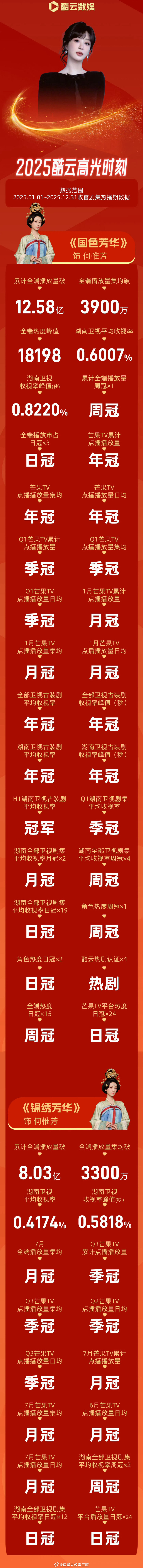 酷云给杨紫发2025专属个人专属战报了,论国色芳华芒果史冠的含金量有多高