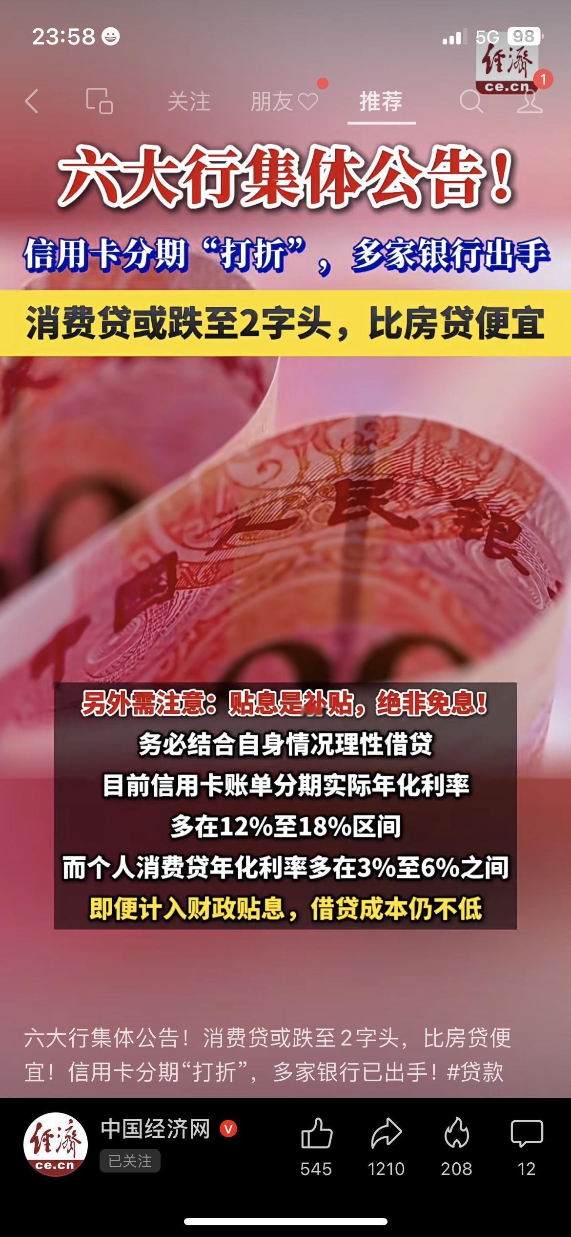 🔥消费贷跌到2字头,比房贷还便宜!六大行集体降息,信用卡分期也跟着打折。我做销售的朋友已经着手申请,说年底冲业绩正好周转。但咱得拎清:贴息不是免息,理性借贷才不踩坑。市场有风险,投资需谨慎。 你会趁机申请低息贷吗? 消费贷降息 银行政策