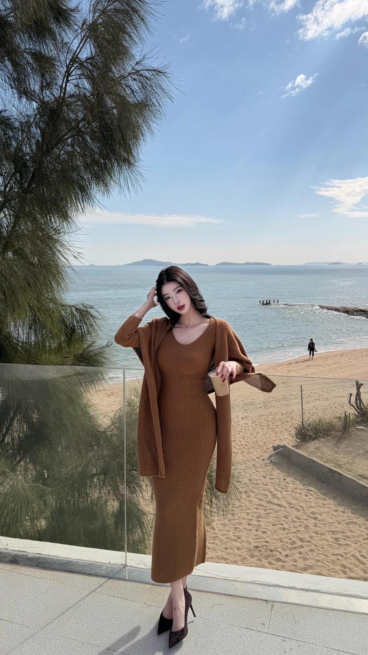 💜 一身紫调针织裙装裹住松弛感,在白墙灰瓦的小巷里,把清冷氛围和随性步调都穿在