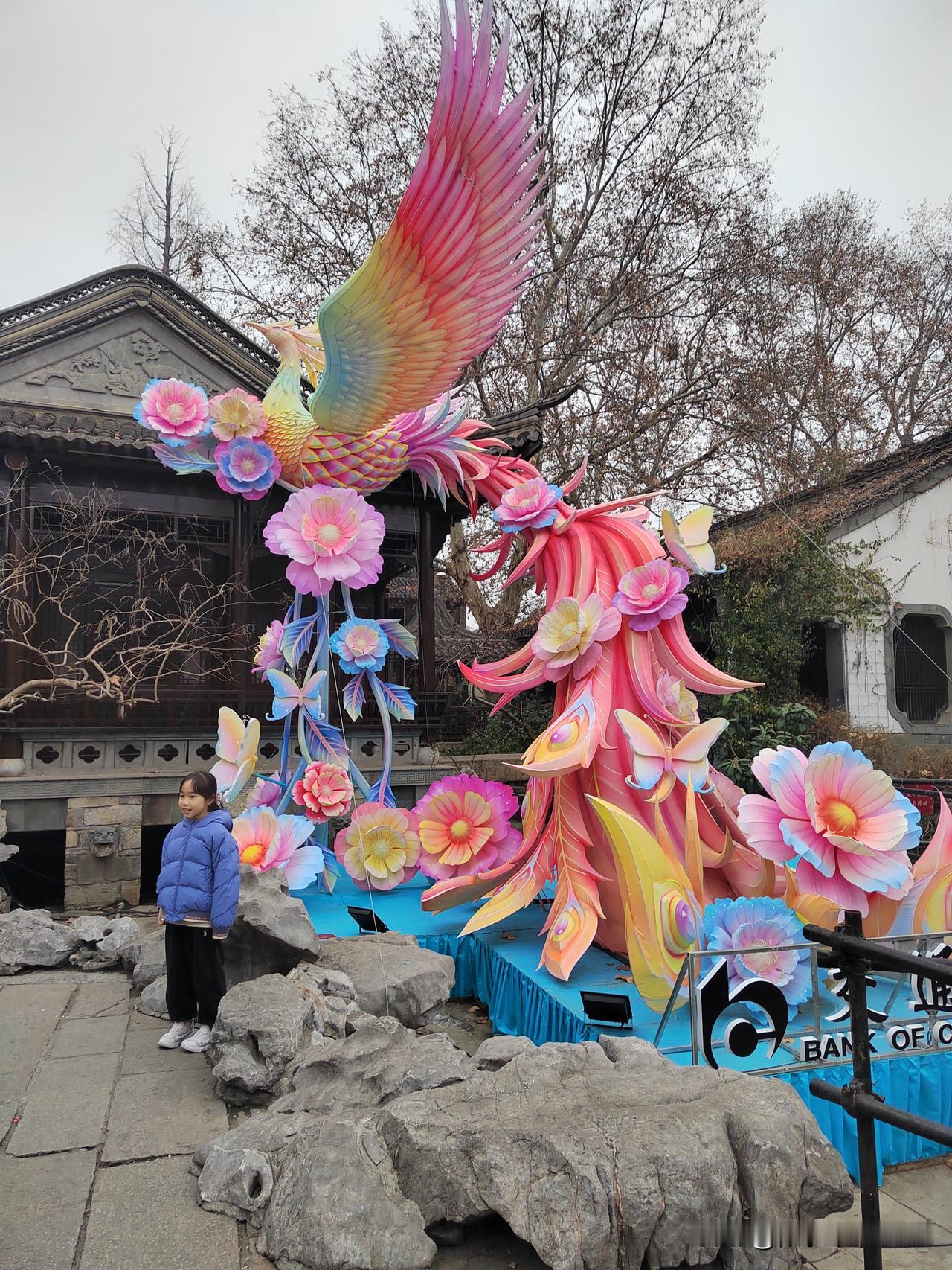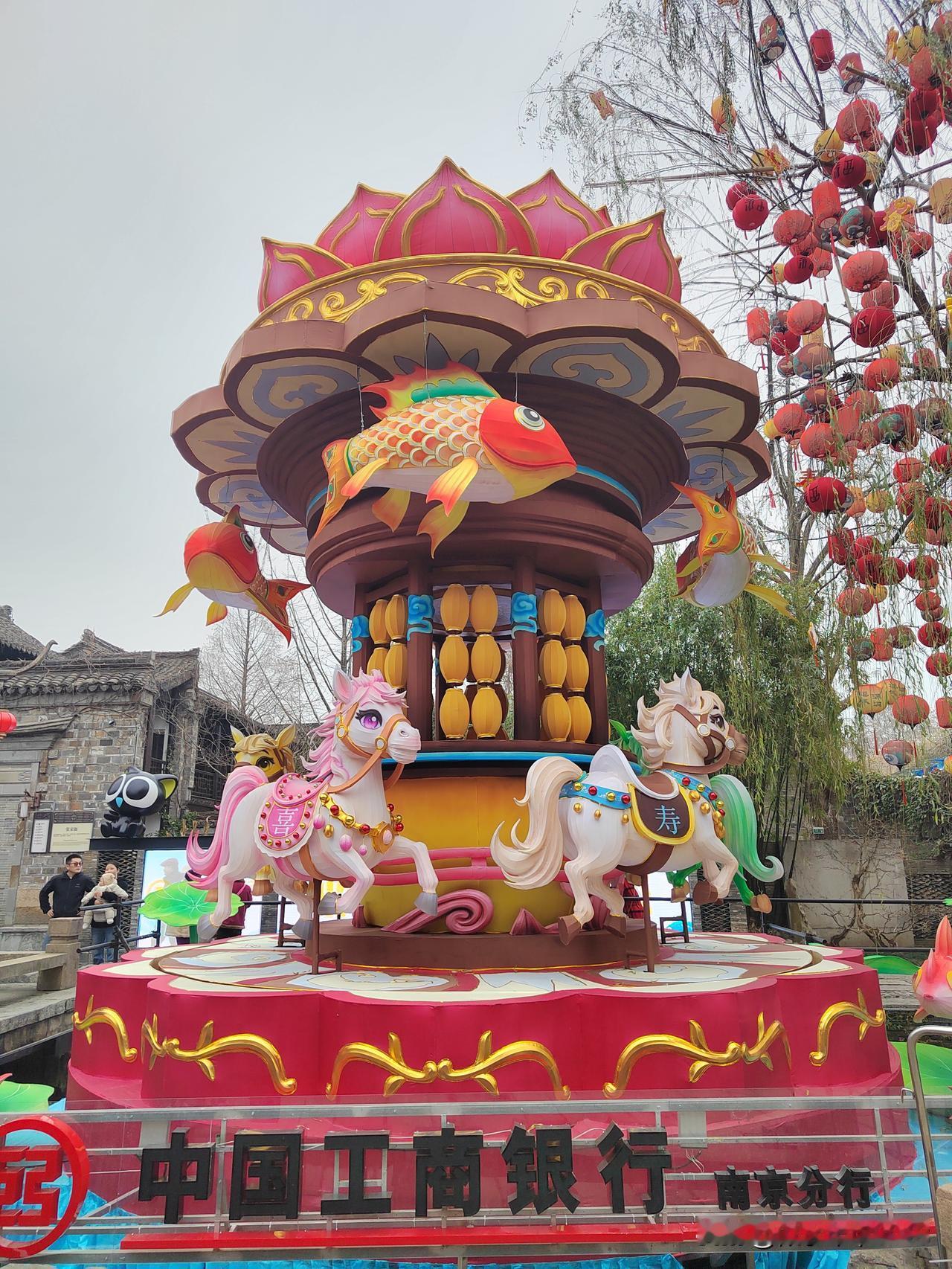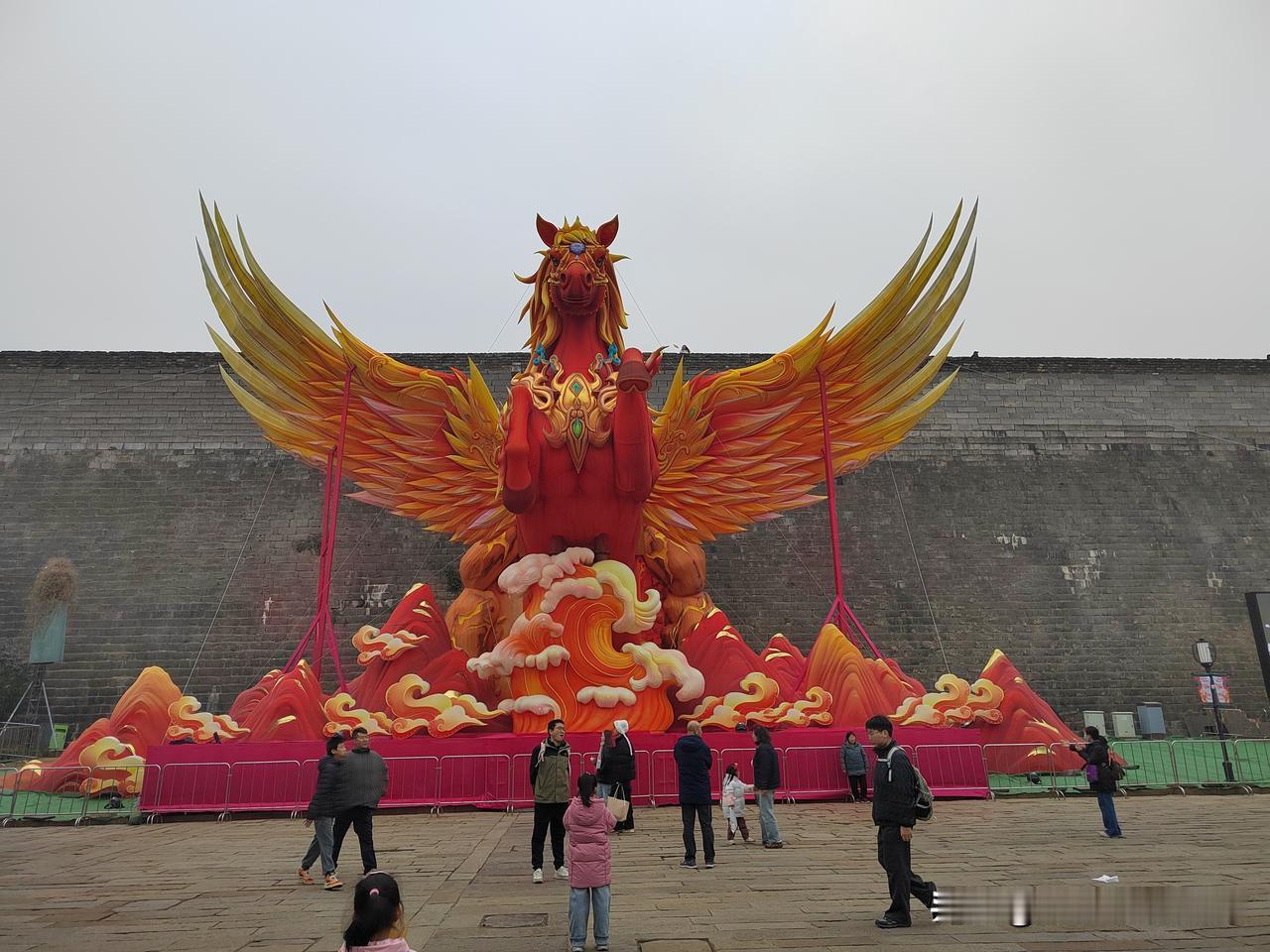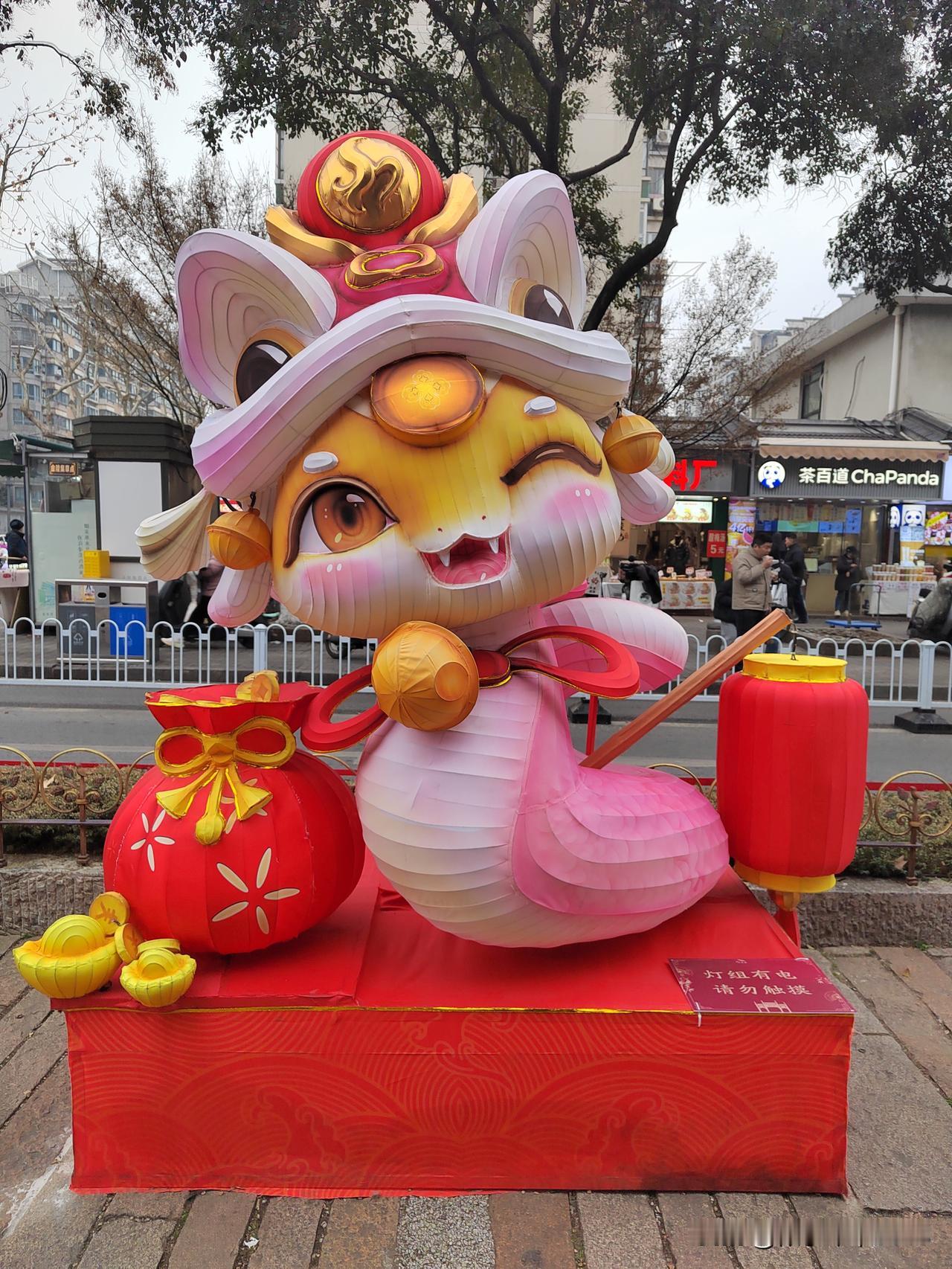 今天南京市天气阴有小雨,最高温度11℃,与昨天变化不大,未来两天有雨。 下午和老伴两人坐公交车到老门东逛一逛,从长乐路沿箍桶巷进入老门东,路口的长乐坊室外正在进行地面铺装施工,部分人行道被占用,行走要格外小心。 从牌坊处进入老门东,步行街两侧布置了大型花灯,步行街中间绿化带内布设了十二生肖花灯,正南面的明城墙下布置了一组生肖马超大型花灯,吸引大家打卡拍照。 有时间的话一定要晚上亮灯时来老门东看花灯,那才叫漂亮。