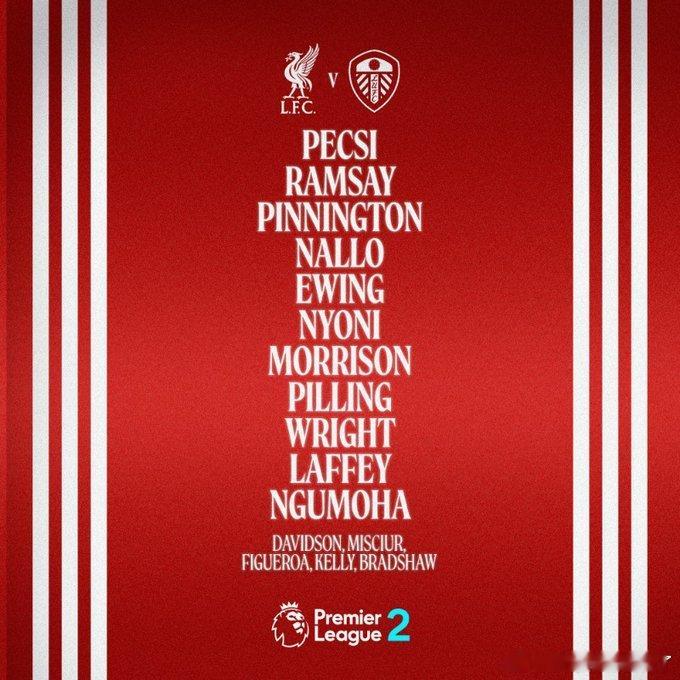 恩古莫哈 拉姆塞 尼奥尼首发利物浦U21对阵利兹联U21首发阵容: 佩奇;拉姆塞、平宁顿、纳洛、尤因;皮林、拉菲、尼奥尼;莫里森、恩古莫哈;赖特替补名单: 米斯丘尔、戴维森、凯利、布拉德肖、菲格罗亚