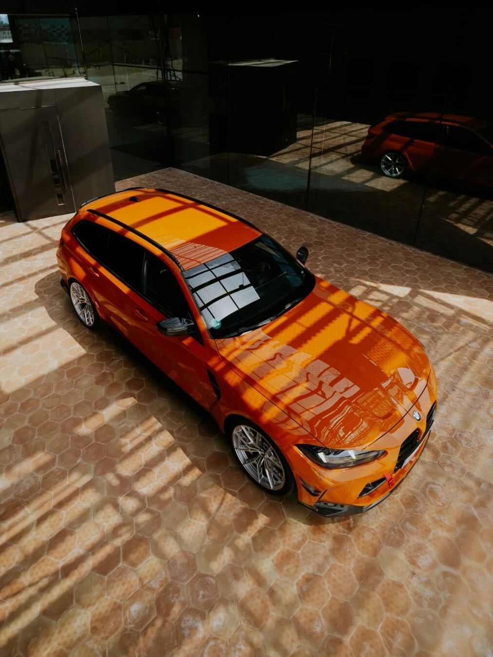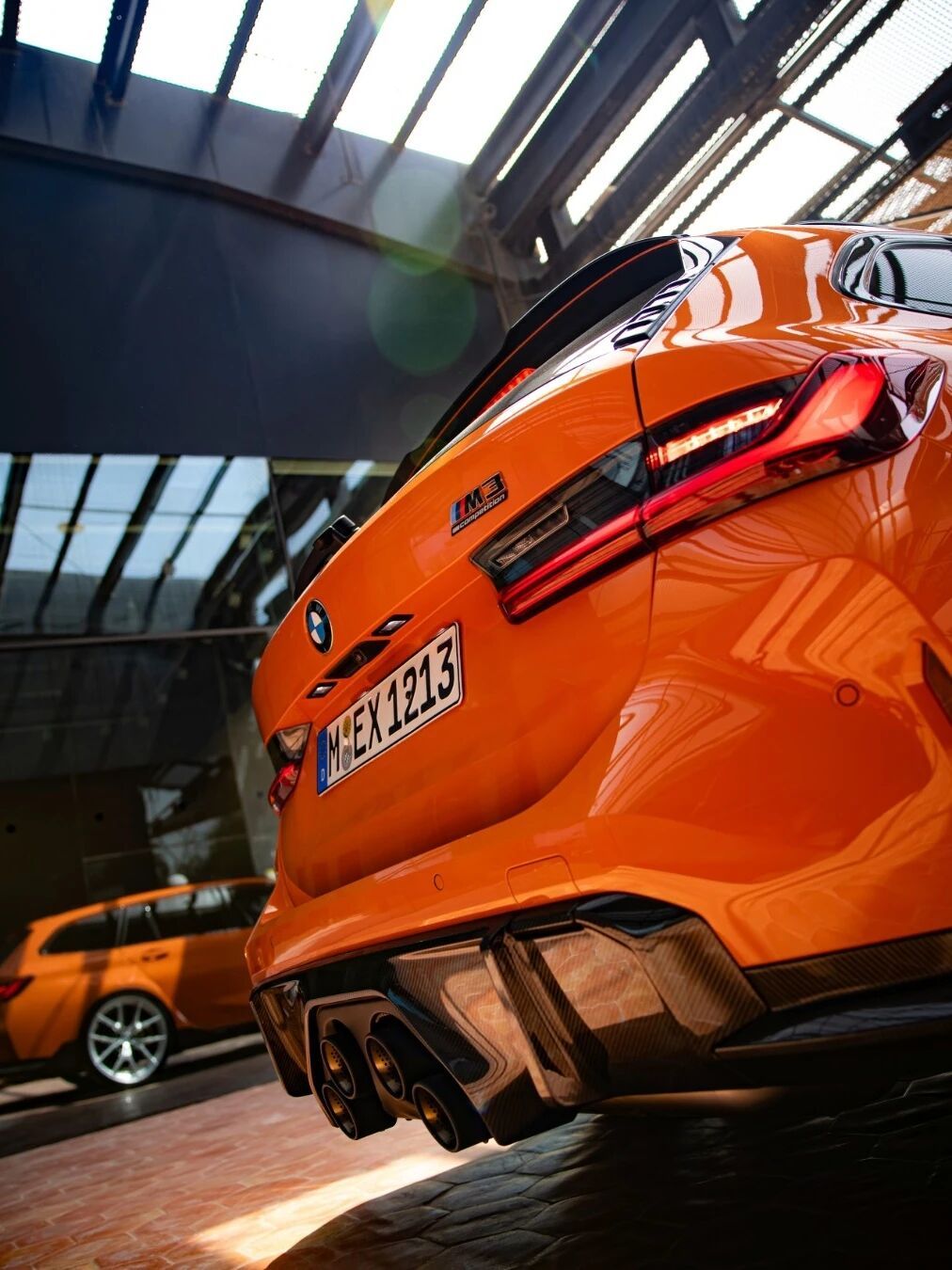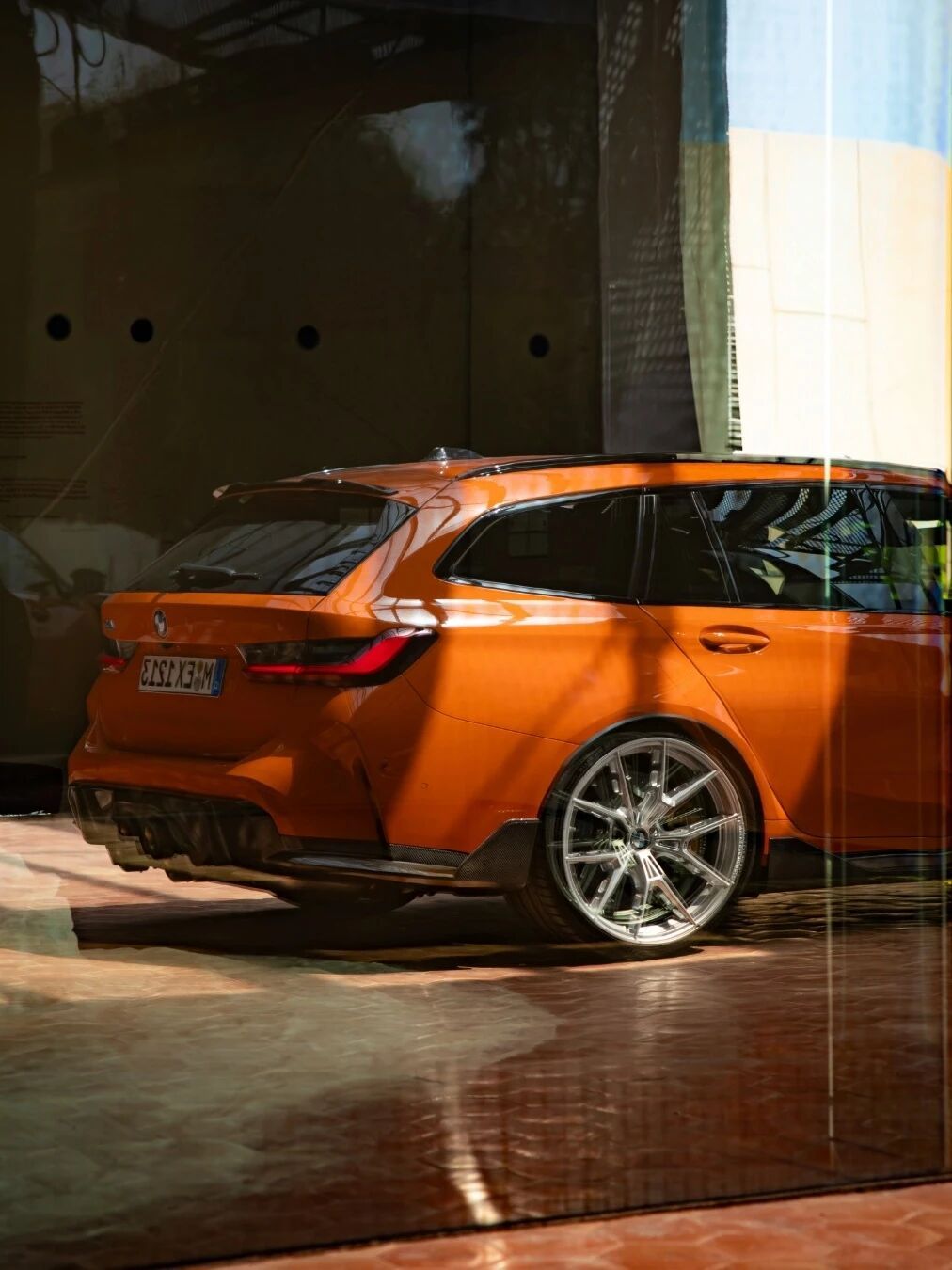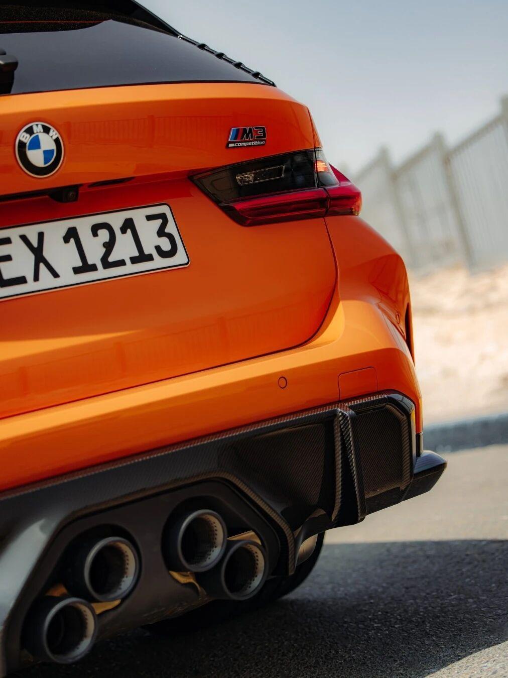 配置拉到顶!宝马G81 M3 Touring,宝马个性化定制的“火焰橙III”金属漆,还配备了大部分M Performance Parts,明显地,你可以看到碳纤维进气/风刀/包角/后杠、梯形中置四出的排气系统、M拖车绳、MPP轮毂以及碳陶瓷刹车!宝马个性化定制