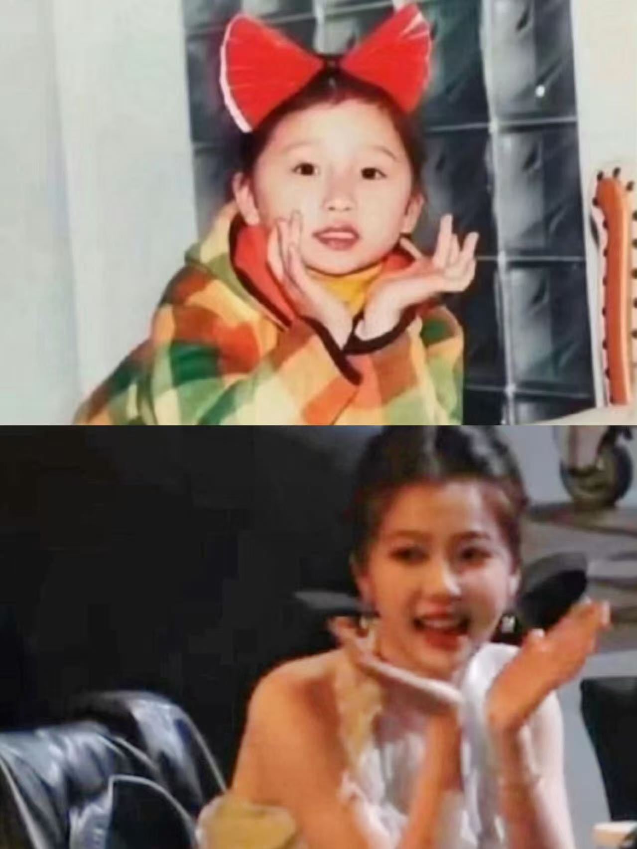 好可爱的跨时空同框!小书欣举小手元气打招呼,长大的欣欣子笑眯眯回应,妥妥等比长大,好萌的女鹅啊虞书欣遇见了小时候的自己