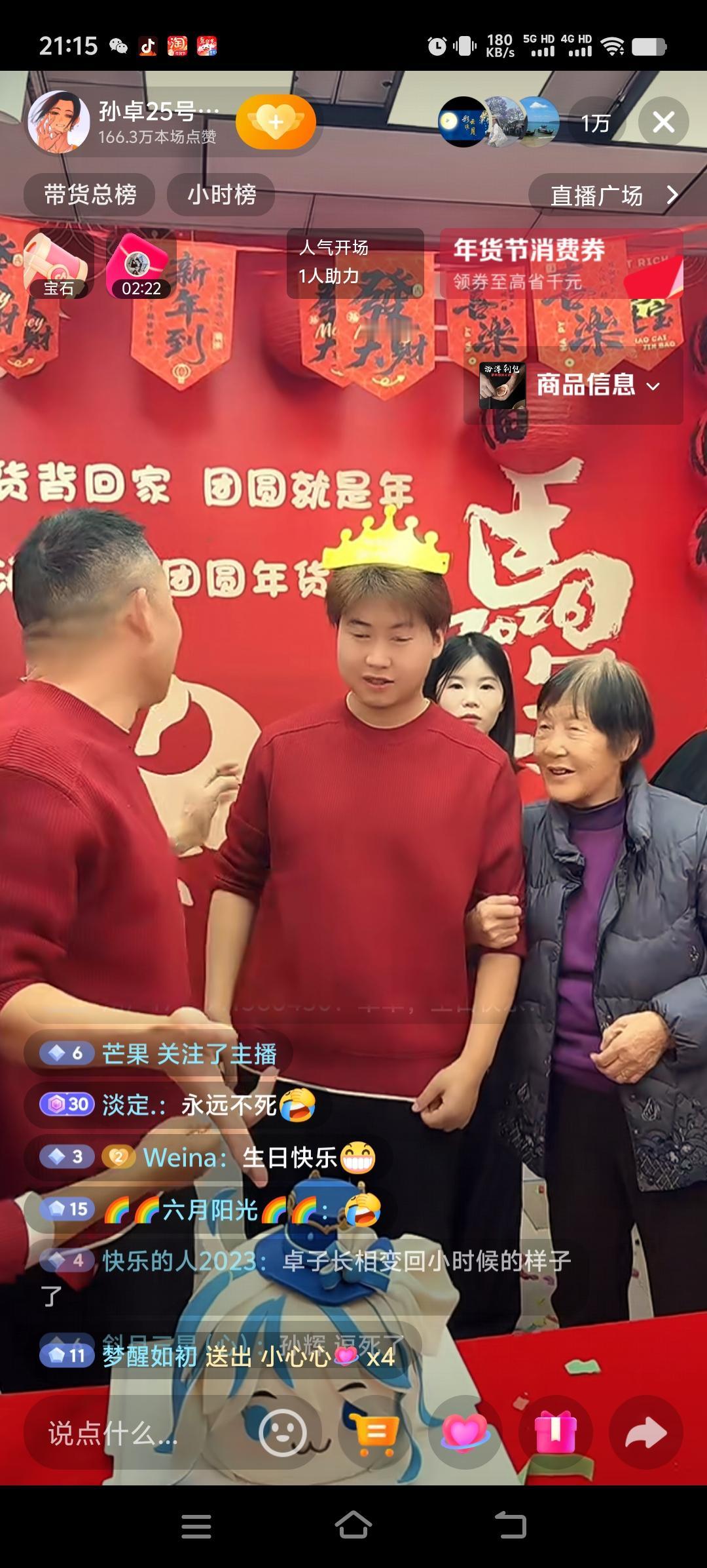 今天是腊月初七,也是孙卓的生日。在直播间里,孙卓全家为他送上生日祝福。姐姐端来专门定制的蛋糕,爸爸在直播间以唱歌的方式为孙卓送上祝福。弟弟孙辉今天也来到了直播间,他说:“祝哥哥学习进步,事业顺利,永远不死。”最后这句话逗得粉丝们开怀大笑,孙海洋不在调上的歌声更是增添了欢乐氛围。 孙卓