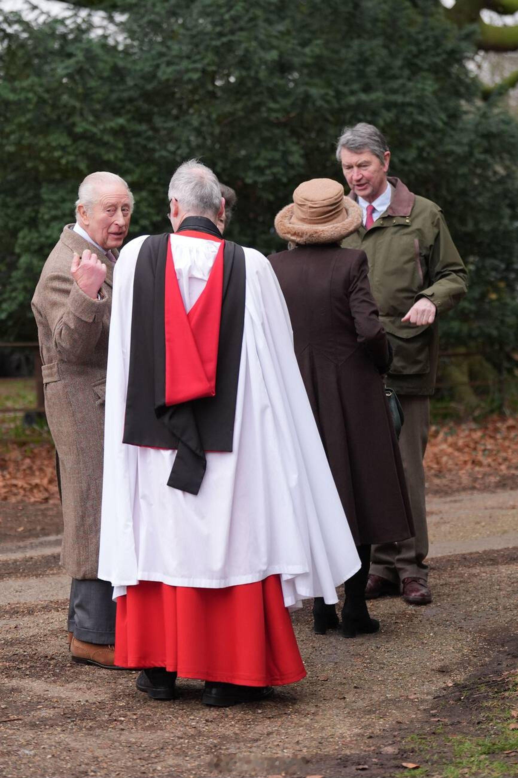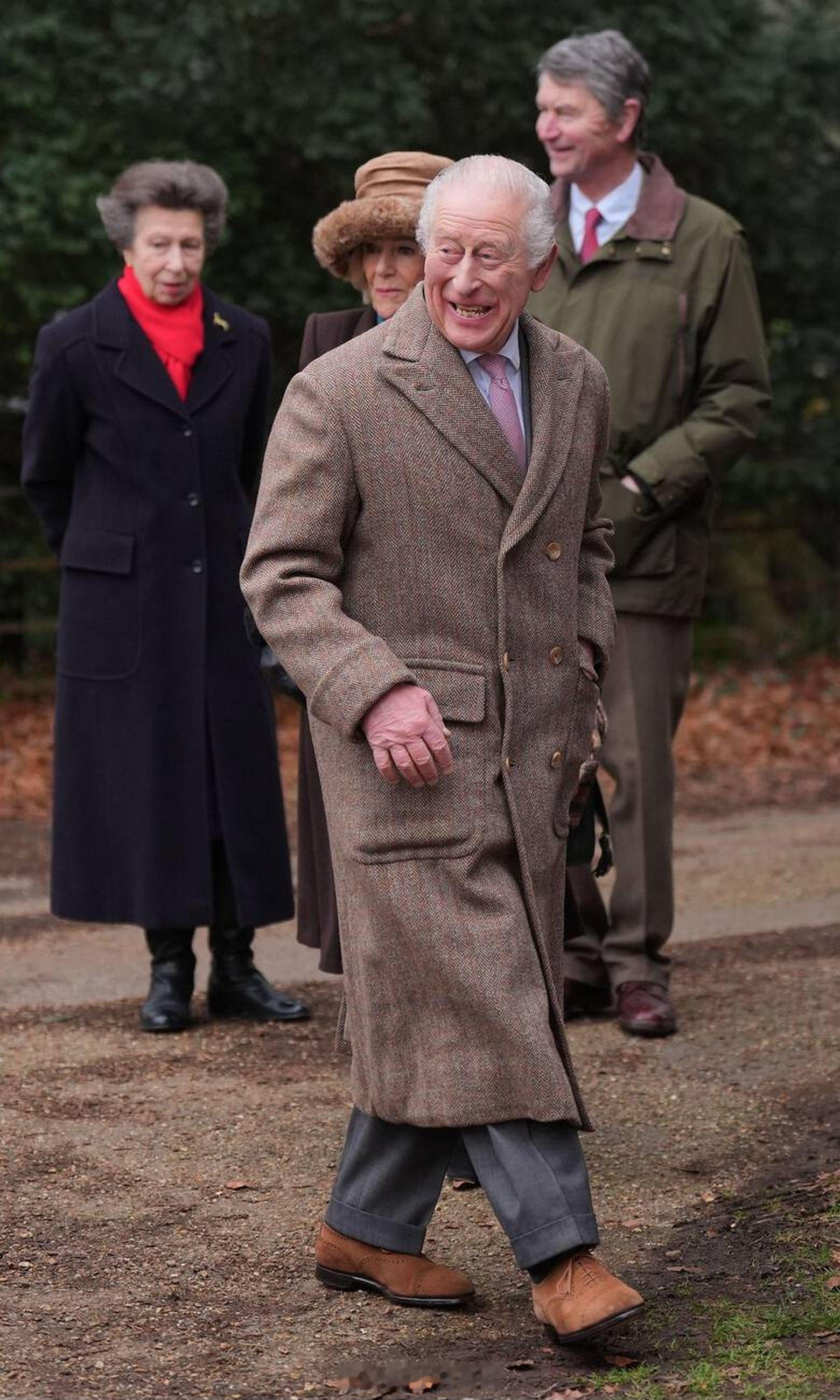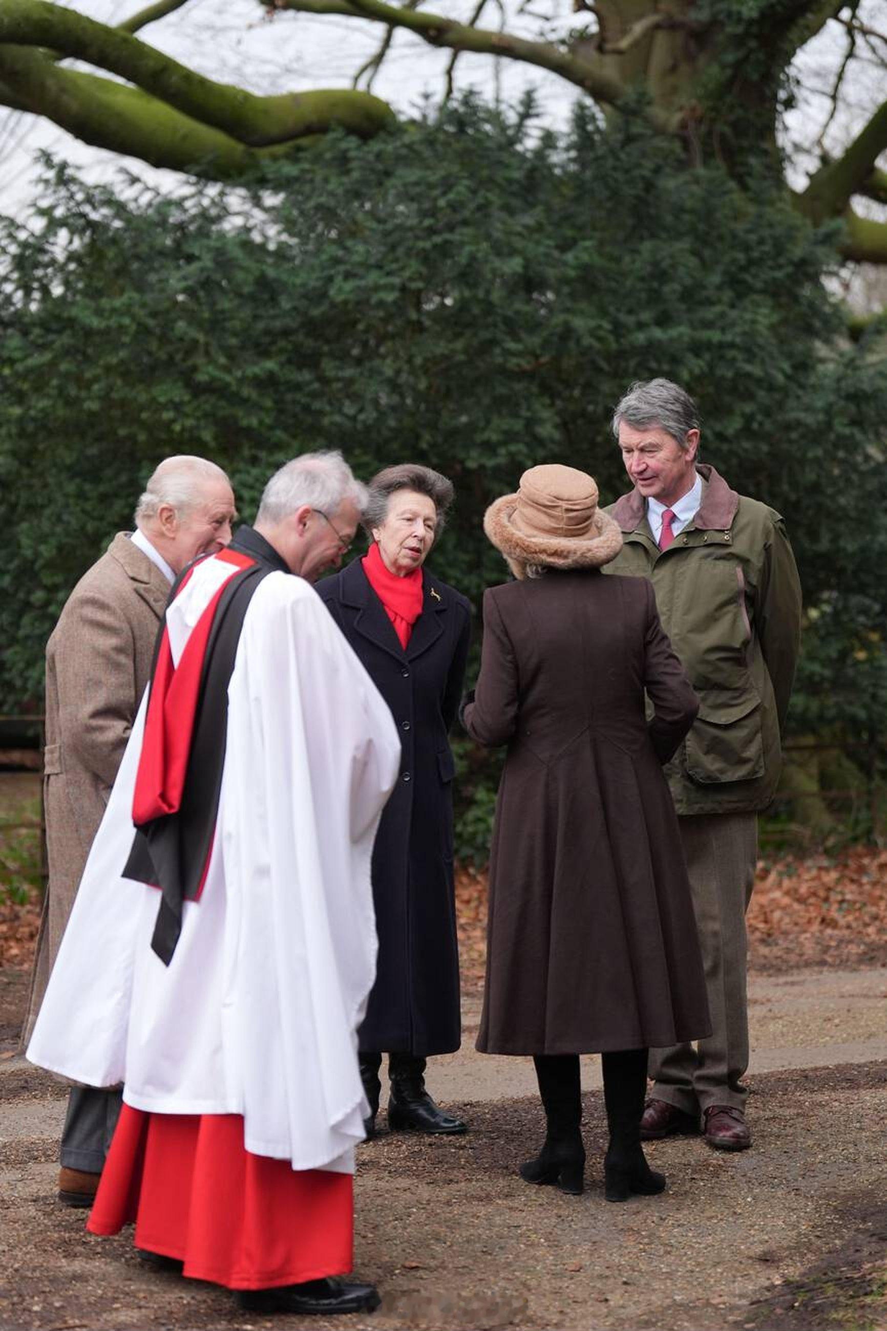 英国王室 今天查尔斯三世、卡米拉王后、安妮长公主和蒂莫西劳伦斯爵士在诺福克郡圣彼得教堂参加教堂礼拜天活动⛪