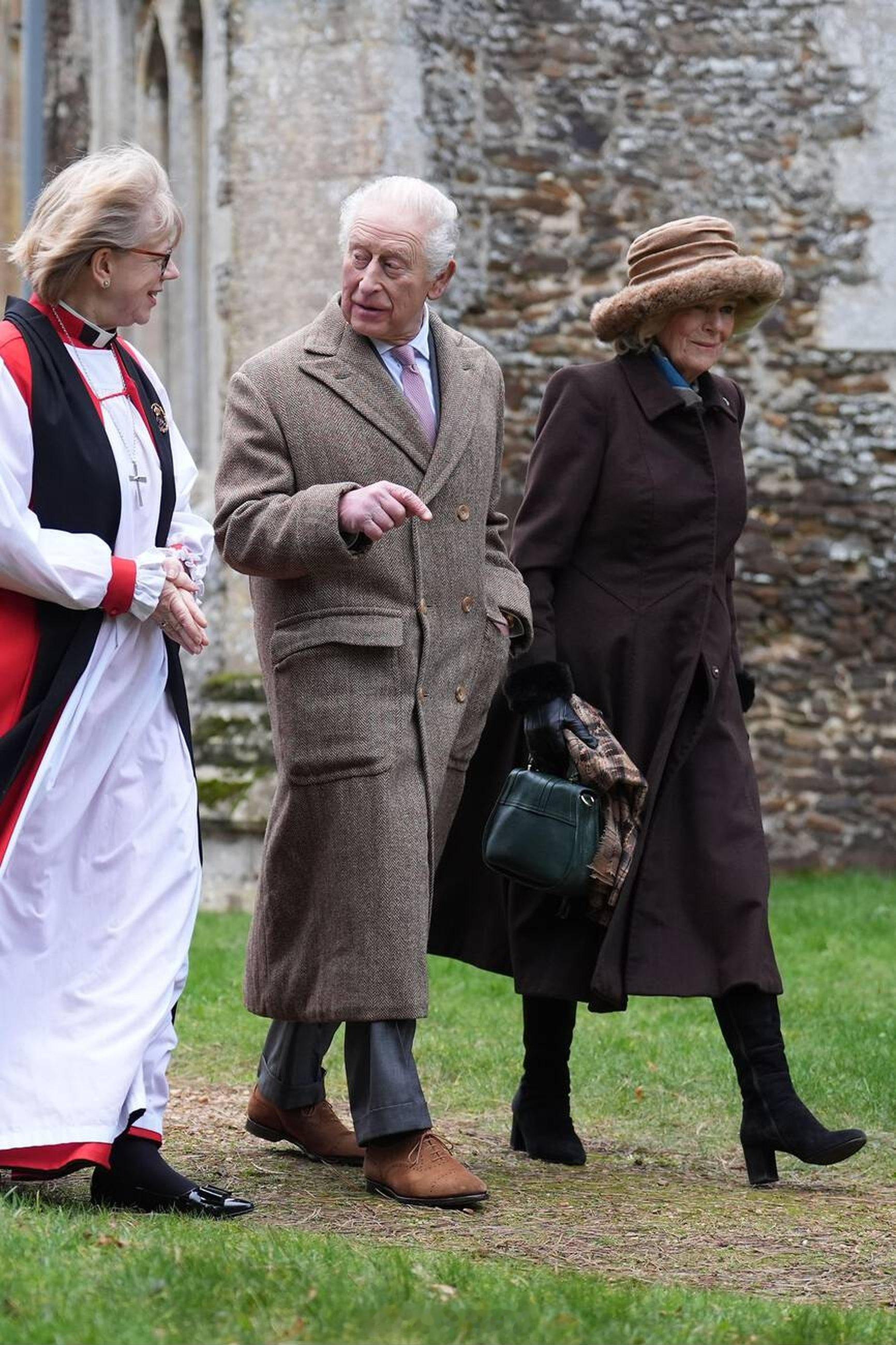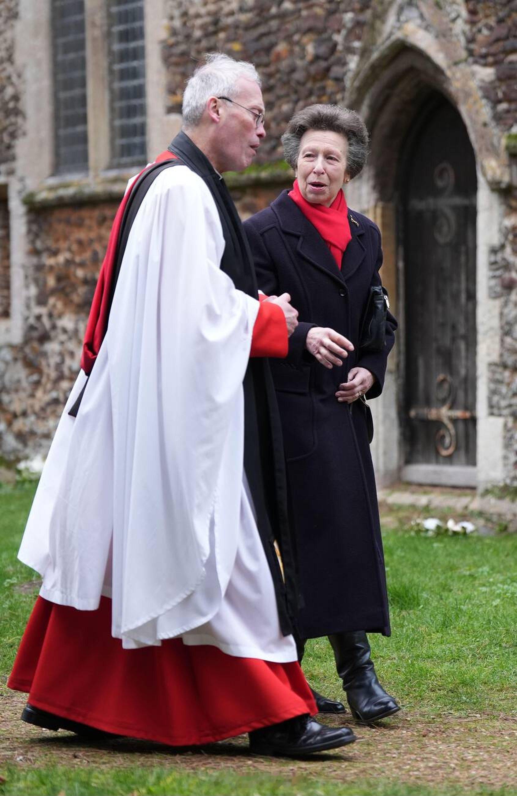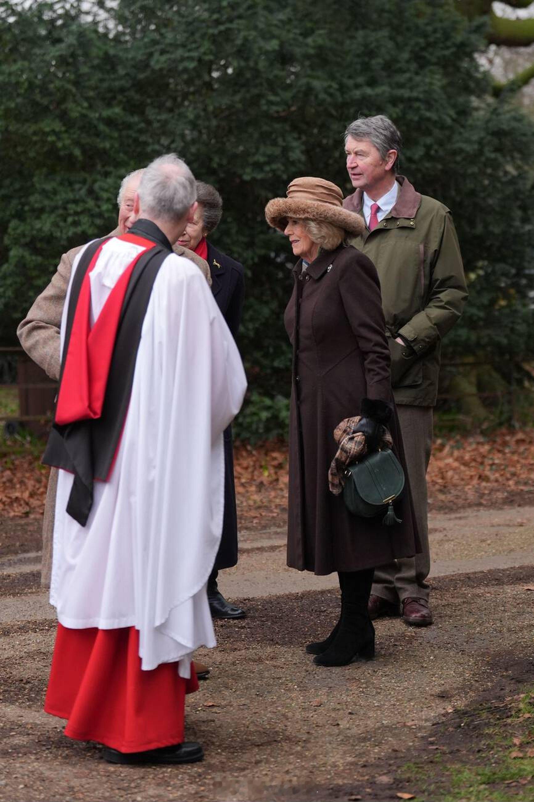 英国王室 今天查尔斯三世、卡米拉王后、安妮长公主和蒂莫西劳伦斯爵士在诺福克郡圣彼得教堂参加教堂礼拜天活动⛪