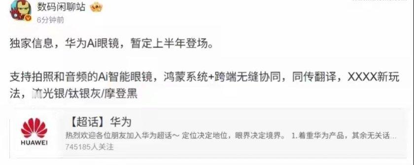 【华为眼镜新品“悄悄”适配HarmonyOS 6.0.0.130,部分功能曝光】I博主 数码闲聊站 此前爆料称,华为 AI 眼镜暂定上半年登场,支持拍照和音频,鸿蒙系统 + 跨端无缝协同,同传翻译,XXXX 新玩法,流光银 / 钛银灰 / 摩登黑。华为鸿蒙 HarmonyOS 6.0.0.130 版本系统的负一屏透露了华为眼镜新品的部分信息。在“动态管理-服务动态”新增了“设备照片导入”选项,相关页面显示,该功能支持实时呈现拍摄设备向手机图库导入照片的状态和进度。该功能的服务提供方为“华为眼镜”,用户可在服务提供方处设置权限 —— 是否允许华为眼镜访问“服务动态”。作为参考,华为曾推出带有音频功能的智能眼镜,主打听音乐、打电话、健康播报等。如今随着 AI 的兴起,智能眼镜行业也纷纷上马 AI,以及自带摄像头、显示屏的 AI 眼镜也不断推新。