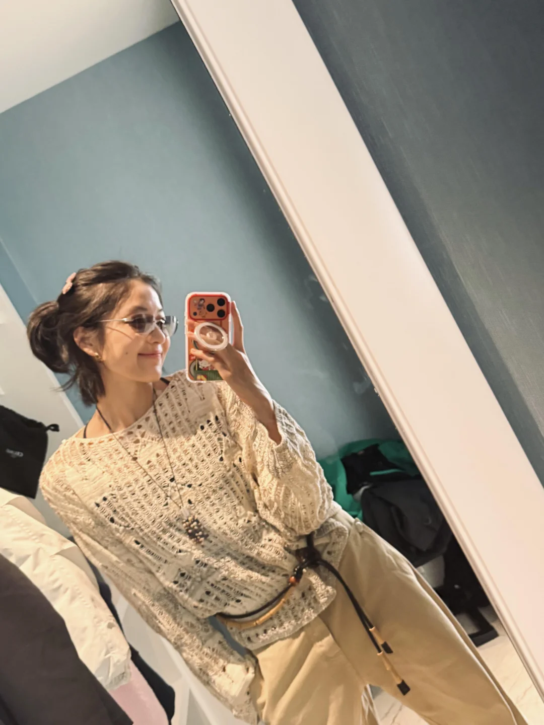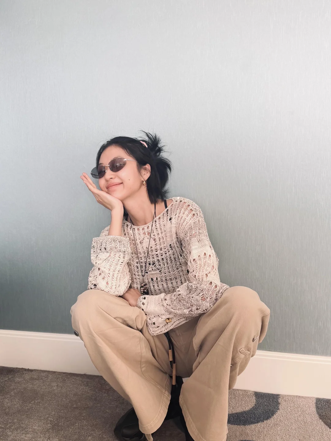 孙千又更新了,感觉又是素颜呢,这次提前演绎了早春穿搭,这一套还蛮日常的,穿了件宽松的镂空小衫,搭配了一条同色系的卡其长裤,简单搭配,却又松弛感拉满了,还蛮值得借鉴! 明星同款 明星私服 孙千 图源 孙千