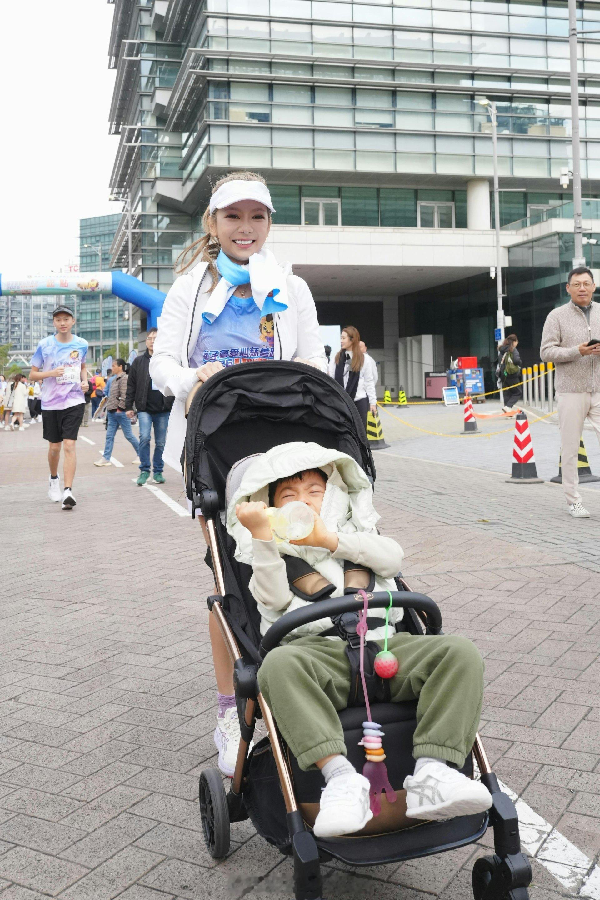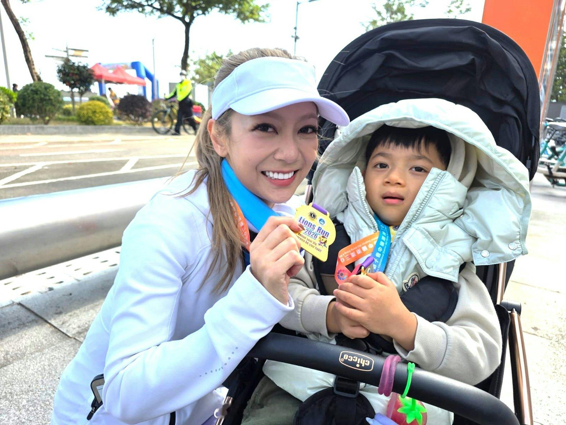 何雁诗推BB车与囝囝参与慈善跑 黄智贤谈《名媛望族》再合作可能何雁诗和黄智贤今日(25日)在大埔香港科学园长廊出席伤健共融嘉年华,这次活动有逾2000人参加,“爱心大使”之一的何雁诗更偕囝囝郑赞廷(Asher)参与3公里赛事,抵达现场时大受市民欢迎,纷纷上前找何雁诗打卡。而身为“狮子会推广大使”的黄智贤同样大受欢迎,他也乐于成为大家拍照景点。何雁诗与患有天使综合症儿子齐参与何雁诗推着坐在BB车的儿子,以母子档轻松完成赛事,两人更开心展示完成赛事后获得的奖牌。何雁诗开心能和囝囝一起落场,她说:“原本Fred(丈夫郑俊弘)想带小朋友一齐参与,但他因为今天要做舞台剧未能出现,始终星期日想同小朋友出街玩,不想两公婆都忙,最后还是决定带Asher出来。Asher今日玩得开心,他对声音好敏感,起步及返回场地时听到好大声音会有点惊,但刚才望着吐露港跑时不停笑,尤其见到有些跑手穿着吹气马仔衫更加开心。”做足安全措施才与囝囝落场何雁诗表示推着BB车跑步最初不惯有点吃力,但只要囝囝喜欢,自己有点累亦是值得。“我保持一个安全速度,始终人好多,安全为上。这场3公里纯粹是玩乐,又不是斗快,BB车又有安全带,相当安全,希望有日他识得步行时一齐落场跑。好难得两母子一齐拿奖牌,冲线时,他见到好多人,开始喊,一拿奖就好得意地笑,摸住金牌又开心喇。(Fred会妒忌无份?)没计,人生就是不公平。”谈到公开寻求如何宣传新歌《在无人岛上跳舞》,何雁诗说:“我不是大公司,好多事要自己解决,所以要广纳网民意见。这次更会跳舞,真是放了好多心血,2月3日会推出MV。”《名媛望族》热度劲 黄智贤估计再难有此阵容拍剧“狮子会推广大使”黄智贤今日虽然喉咙不适,仍照常出席活动。提到有份主演剧集《名媛望族》深宵重播翻Hit,黄智贤开心表示:“是,好多人问齐日辉(剧中角色)有没有成功追求尔嫣(陈玉莲饰),我现在要卖关子,原来当年好多人没看过。好荣幸参与,好开心跟松哥(刘松仁)做对手戏,对上一套《潜行狙击》已经好多谢他。我估计依家好难有这种组合,莲妹当时都肯出来拍戏。”