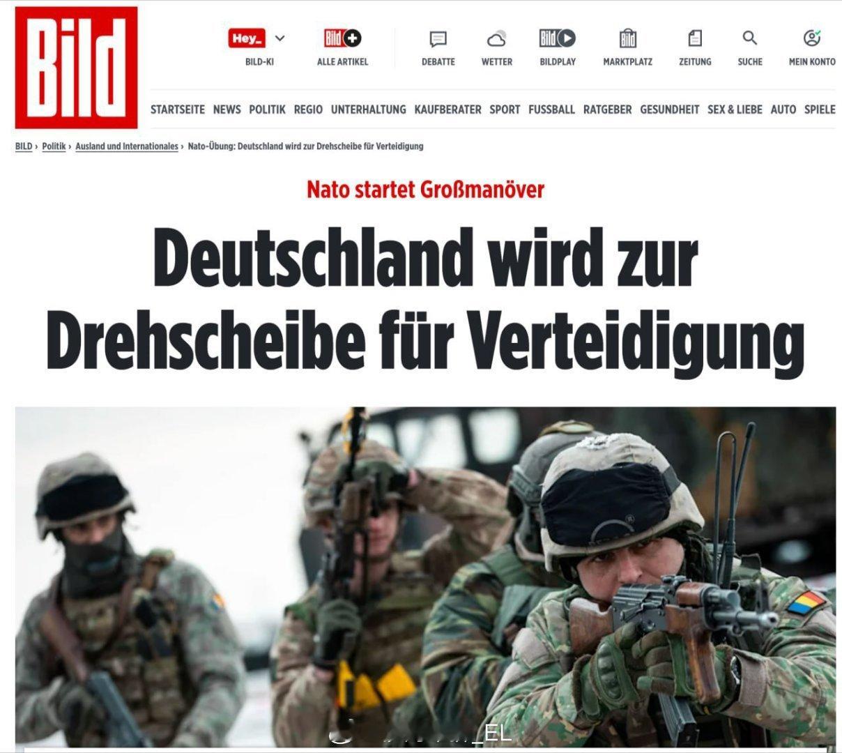 德国《图片报》:北约启动最大规模“坚定匕首”演习,演练与俄罗斯冲突▪️演习内容包括在与俄罗斯发生冲突时,如何向波罗的海方向和波兰方向投送部队和武器装备。▪️本次演习共有来自11个国家的1万多名军人、17艘军舰、约20架飞机和1500件装备参演,包括坦克、导弹系统和军用卡车。主要后勤运输通过德国进行,该国实际上已成为联盟的中心中转平台。