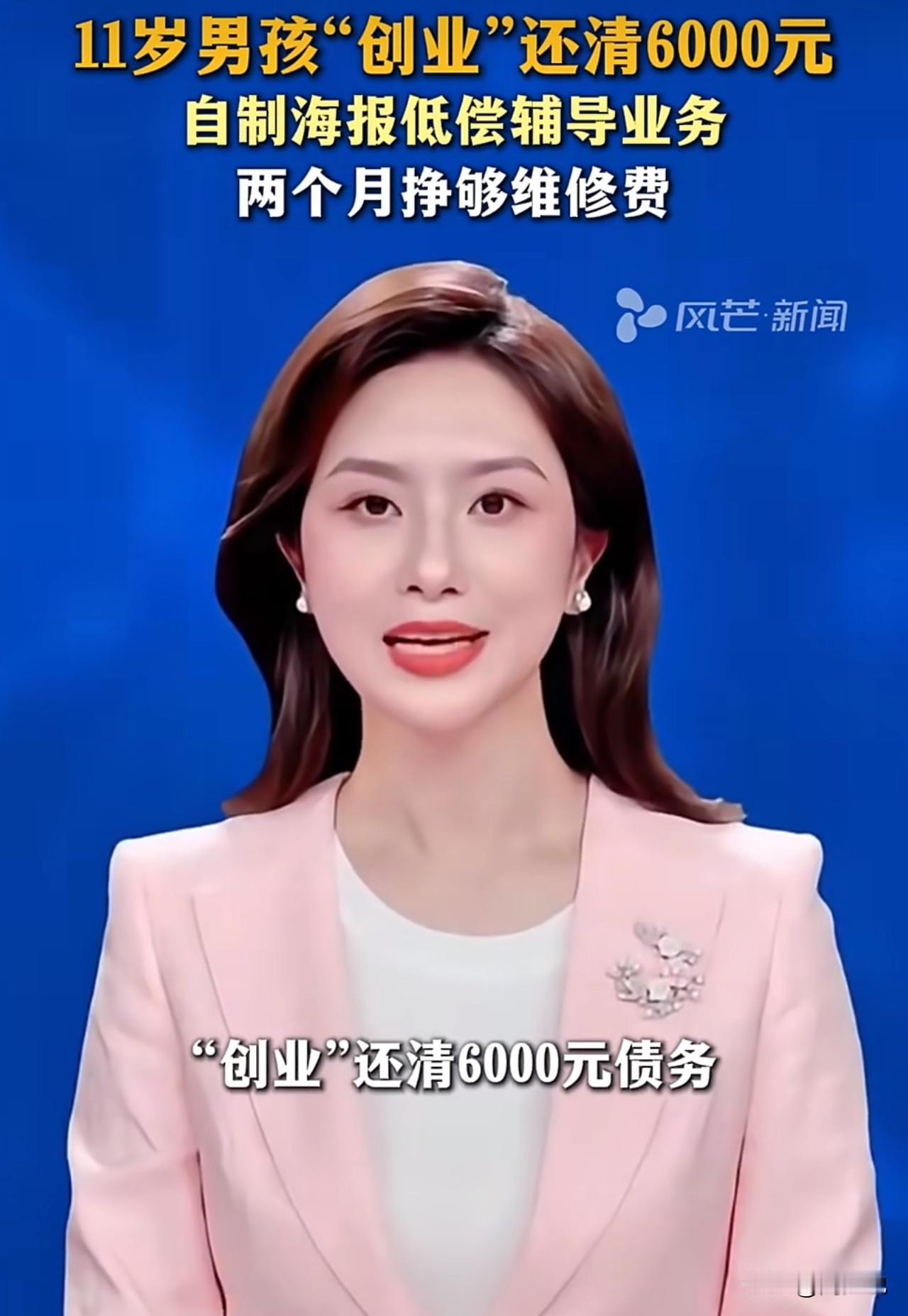 “太牛了!”杭州一位11岁男孩,为还债,创业2个月赚6000元还清债务。据悉,这位男孩不小心划破家里电视屏,面对6000元换屏费,没哭鼻子躲责任,反倒琢磨出了“创业还债”的主意。他捣鼓出一张创业海报,明码标价:陪写作业一小时40元,田径、足球陪练一小时30元,钢琴陪练45分钟30元。妈妈帮他把海报发去小区业主群,没想到,叔叔阿姨们特别捧场。从此,尧哥放学后的时间被排得满满当当,陪写作业、带练运动、指导钢琴,忙得脚不沾地。不到两个月,他真的凑齐6000元,把钱交到妈妈手上。 此事曝光后,网友们都忍不住夸:“这小孩哥有担当,小小年纪就懂得扛事,未来可期!” 更有网友纷纷表示:“这教育方式也太赞了,不是一味宠溺,而是教孩子直面责任。” 看完这事,周少不得不说太佩服这位男孩的生意经以及行动力了,不小心划破家里电视屏,为了还债,竟然做出这样的举动,实在让人佩服。 当然,这事也藏着家庭教育的大智慧。孩子犯错时,父母没指责打骂,也没掏钱兜底,而是放手让他自己承担后果,这种教育方式,恰恰给了孩子成长的底气。 如此来看,比起给孩子灌输大道理,让他们在实践里学会责任与担当,或许才是更有效的教育。简单来说,这种在实践里摸爬滚打的经历,可比说教管用得多。它教给孩子的,不只是赚钱的本事,更是直面责任的勇气,这可是多少钱都买不来的成长财富。#寻美三湘# #长沙新朋友#