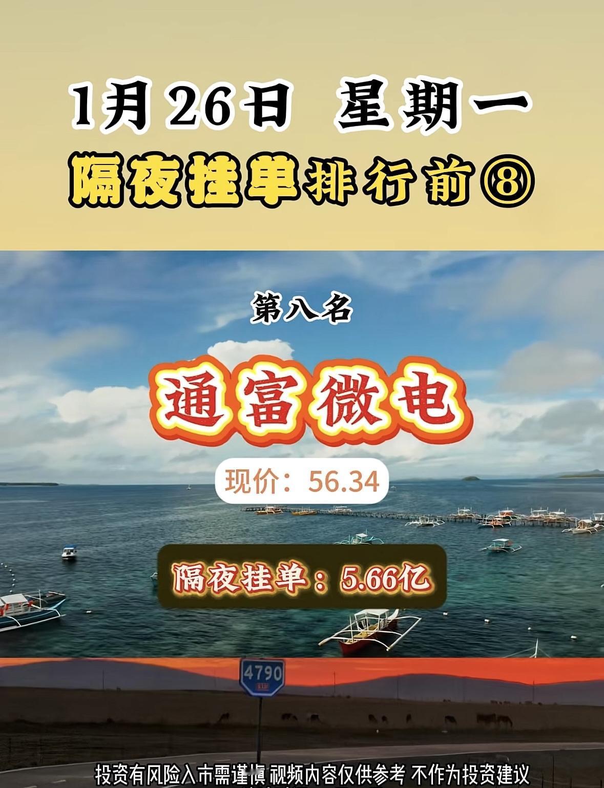 “1月26日暗盘隔夜挂单通富微电”隔夜挂单排行前8,现价56.34,投资需谨慎!🌊💰 "茅台登顶隔夜单榜首,投资需谨慎理性" 茅台隔夜挂单居首,资金热度高。市场波动需谨慎,理性决策为上。