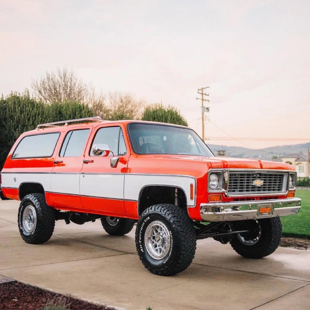 1975 年 Chevrolet K20 Suburban 4×4 是美式全尺寸越野家用与商用并重的代表。 作为 C/K 系列的 K20(3/4 吨)越野版,1975 款以结实车架、四轮驱动与多种 V8 发动机著称——常配 5.7L(350)或可选 7.4L(454)V8,搭 3 速自动或 4 速手动变速箱,扭矩充沛、牵引力强,适合拖拽与重载任务。方正厚重的车身与朴实耐用的内饰强调可维护性与长寿命。 1975 年在北美上市,诞生于动荡的七十年代:尽管时代受能源与政策影响,K20 仍坚持“力量优先”的美学,象征着对自由与实用的执着。 无论家庭远行还是野外作业,它像一位可靠的老友——粗粝却令人安心;如今被收藏者视为复古力量美学的活化石,每一次启动都是对那个年代工艺与公路传奇的致敬。情怀老车 雪佛兰皮卡