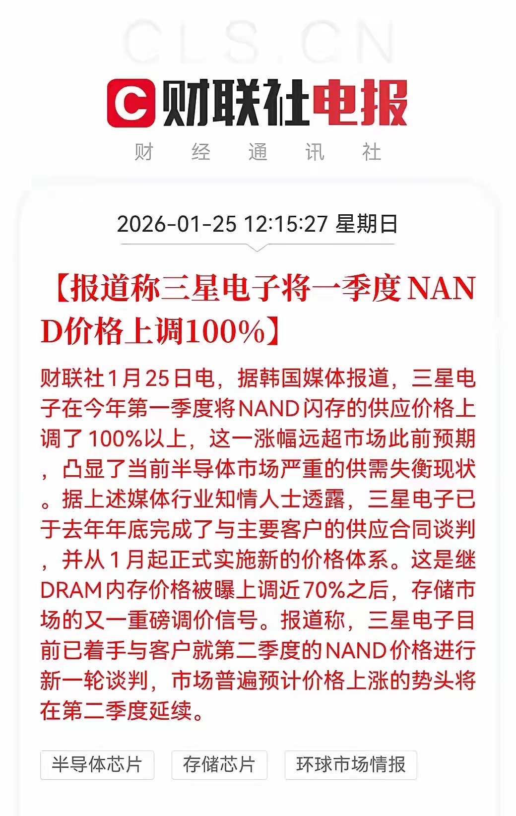 NAND价格上调100%,这就不是市场调节,而是明抢。所谓的供需失衡,自导自演的嫌疑更大。DRAM涨70%,NAND涨100%,存储市场瞬间变成了三星的私人赌场。消费者还没从去年低价固态硬盘的快乐中醒来,就被一盆冰水浇了个透心凉。第二季度还要继续涨?这是摆明了要榨干下游客户的每一分利润。AI热潮和服务器需求,让三星涨价理直气壮。但这种涨价狂欢,本质上是在透支整个行业的信用。供应链上的玩家们,现在跳的有多欢,将来必定拉清单。历史早就证明,垄断式提价往往预示着行业泡沫的临近。三星现在踩油门越狠,未来刹车时甩出车外的风险就越大。等着看吧,市场从来不会惯着任何玩家的贪婪。