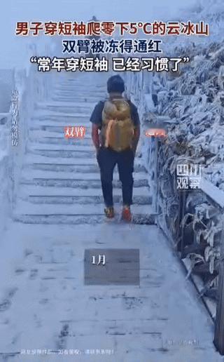 老广 暴击黑吉辽,人均抗冻的谣言,在零下5℃湿冷环境中仅穿短袖徒步云冰山8小时。🐶 彭先生于1月22日清晨5点从广东清远云冰山出发,全程仅穿短袖,在气温零下5℃、高湿度环境下徒步至下午1点,持续8小时。他自称常年在广东保持短袖习惯已达20余年,坦言此次经历中南方湿冷是“穿透性魔法攻击”,体感刺骨程度远超长白山干冷。视频画面显示其双臂冻得通红、频繁搓手,也暴露他身体实际承受湿冷的压力。 在此贵州的朋友提醒一下靠乌蒙山取暖的老癫,湿冷环境中高湿度空气和水汽会渗透衣物,通过蒸发和传导高效带走体表热量。同等低温下,湿冷的热量掠夺效率远超干冷,短袖在零下5℃环境中无法维持核心体温,8小时徒步产生的热量远低于持续散失量,核心体温低于35℃可致死。 呼吁媒体平台这样的传播易引发青少年效仿,个体耐寒差异不具普适性。平台需强化风险提示或禁播,失温是生理不可控过程,意志无法突破生理极限,非必要不挑战极端环境。 生存挑战极端天气,需科学防护与风险预案,切勿让“习惯的流量”掩盖真实风险。广东冬季气候 广东低温