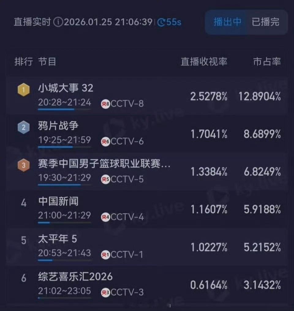 小城大事今晚峰值收视率均破2.5,市占率断层第一 这样的收视成绩充分体现了观众对优质内容的认可。期待《小城大事》继续保持高水准,再创收视新高小城大事
