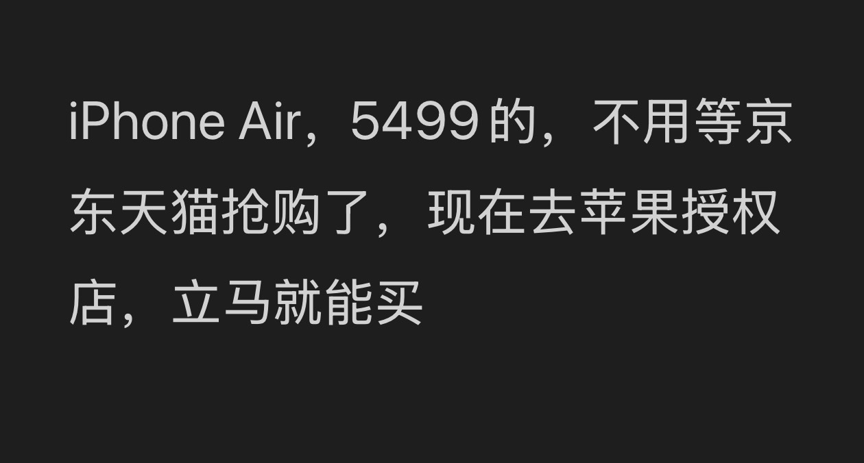 想问问,这波 iPhone Air 有人冲了吗?据说有一些授权经销商也跟进了?那大概率是类似于官降???