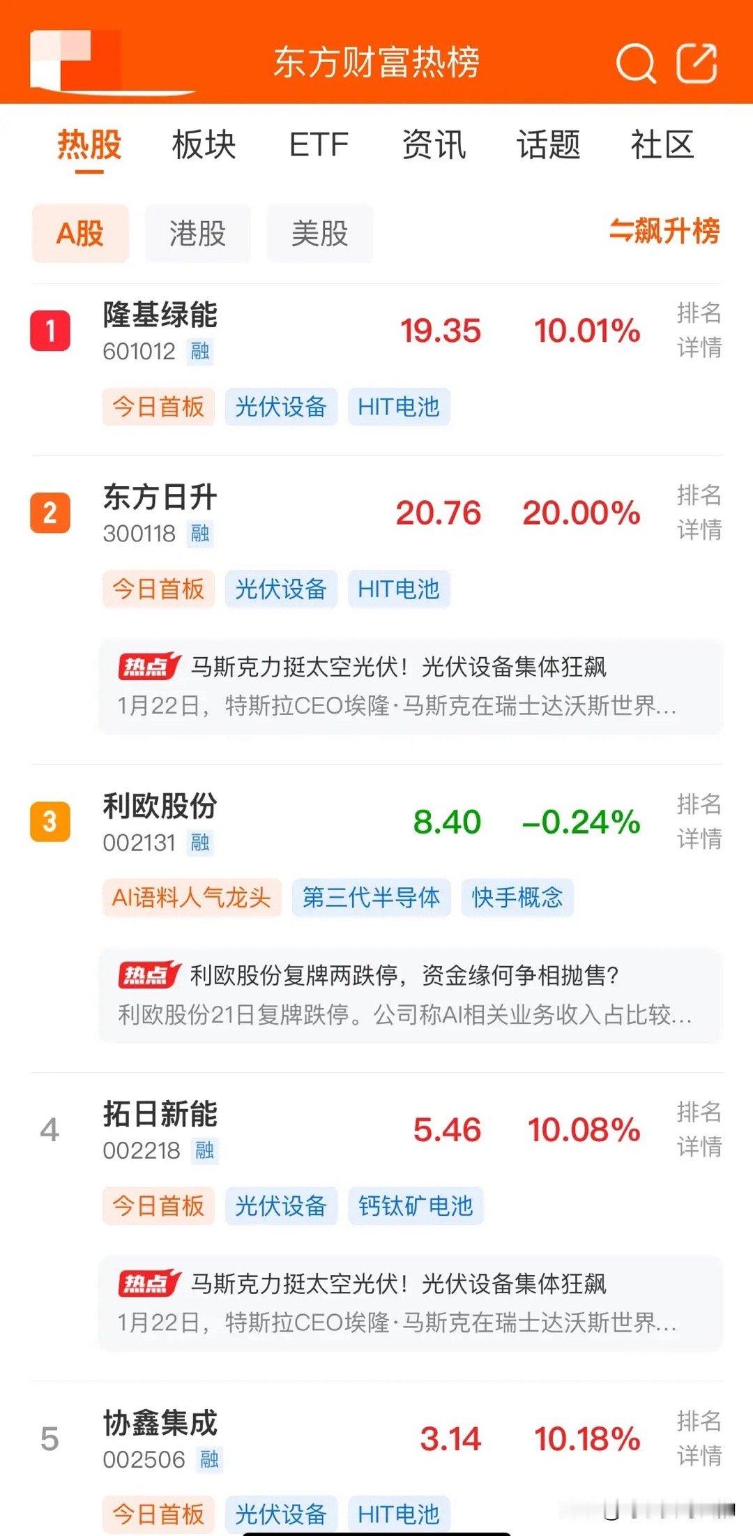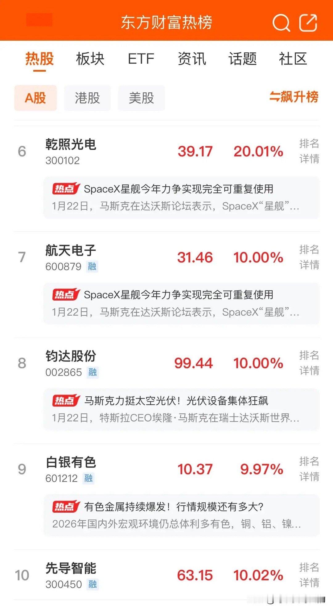 明天又要开盘啦!看看本周末最热门的票都是哪些!1、隆基绿能,光伏设备,周五涨停2、东方日升,太空光伏,周五20cm涨停3、利欧股份,AI应用,复牌后两连跌停、周五开板4、拓日新能,光伏设备,周五涨停5、协鑫集成,光伏设备,周五涨停6、乾照光电,商业航天,周五20cm涨停7、航天电子,商业航天,周五涨停8、钧达股份,光伏设备,两连板9、白银有色,有色金属,4连板10、先导智能,电池设备,周五大涨10%光伏设备之所以爆发很大原因是因为太空光伏,因此这些光伏设备也可以算做商业航天,这也就是说最热门的票中就有7家来自商业航天,而7家里面又有6家是与太空光伏有关的,所以说商业航天中的太空光伏分支有崛起的趋势,不过有待周一验证确认!由上也可以看出,本周末最热的还是商业航天概念,而且从周五收盘后一直到今天商业航天概念一直有利好消息,所以如果明天商业航天能够继续强势的话,商业航天很有可能开启第二波上涨行情!