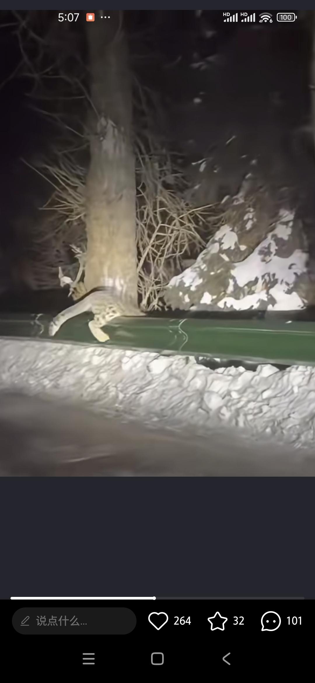 有网友在雪场回镇上的必经之路上再次拍到雪豹,看身形还是那天应激后弄伤女游客的那只。 明显刚离开母豹没多久,亚成年,本应该在可可托海山上独自闯荡,误打误撞跑下面找吃食来了。 它还好,身形矫健,有点瘦,在汽车大灯的照耀下略显慌张。 雪豹属于国际自然保护联盟濒危物种中的“易危物种”,全球雪豹数量还不到8000只。 它们是高海拔地区的食物链顶端王者,是美丽的雪中精灵。 愿被拍到的这只小家伙平安,能回山上去不被人类打扰当然更好。 (视频来源网络)