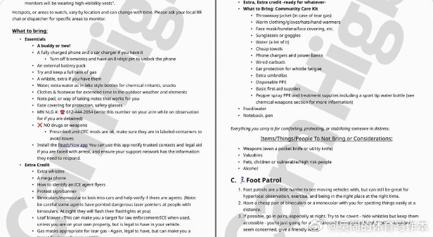 【黄金时代】续前文,有趣的是,反移民执法局(ICE)的培训手册清楚地列出了可以携带和禁止携带的物品。有趣的是,手册明确规定禁止携带任何“武器”——甚至连“小刀或工具刀”都不行。但很多人都没遵守!美国和欧洲当代史川普主义研究热点现场海外新鲜事