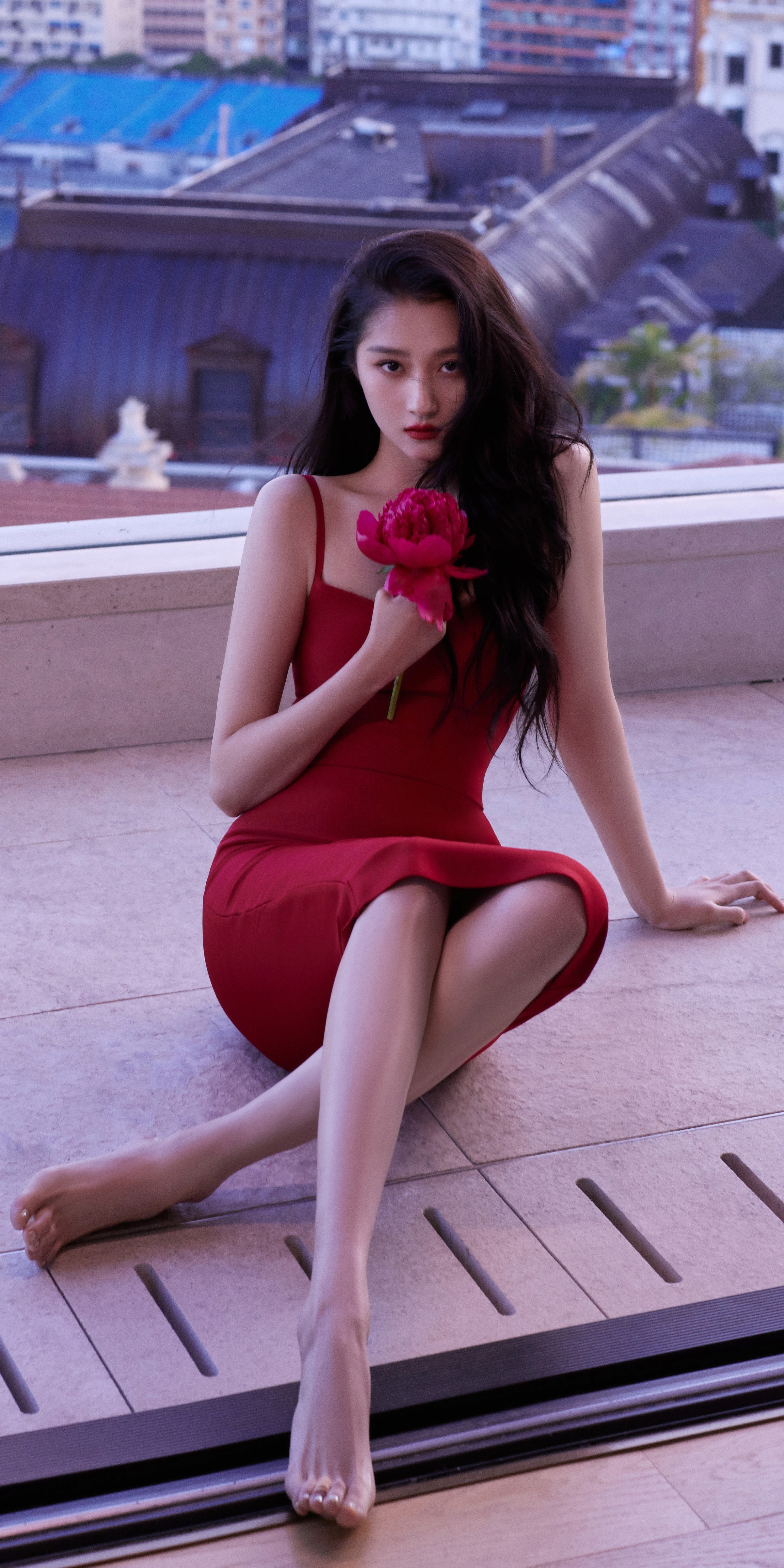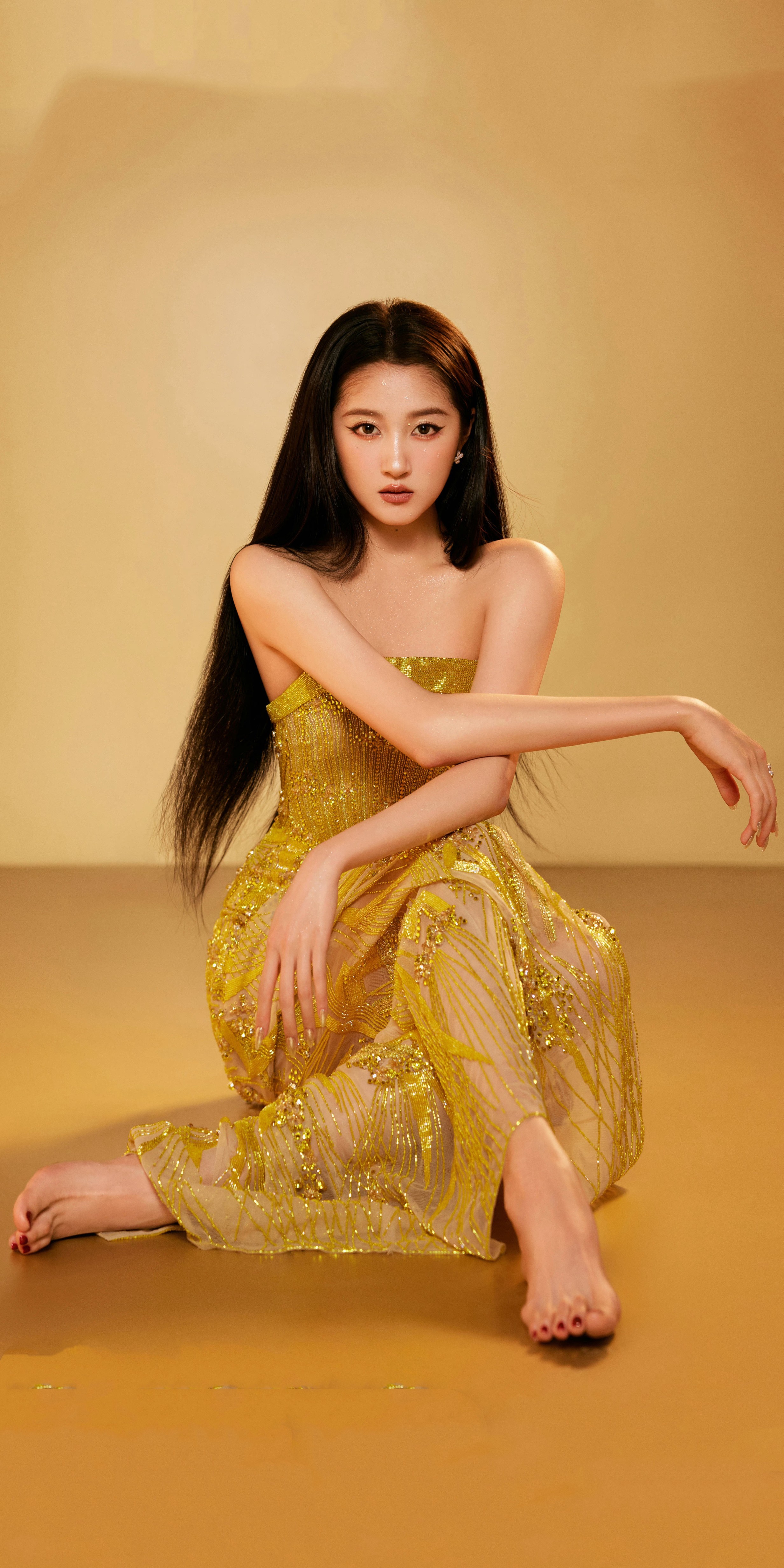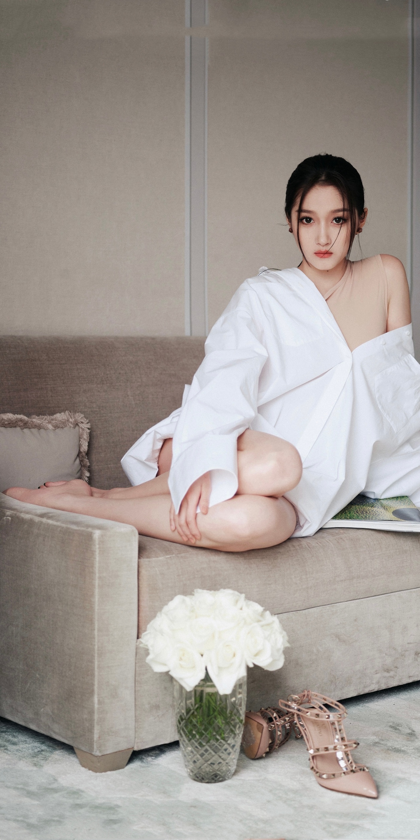 关晓彤壁纸:光脚丫甜美少女。关晓彤 OOTD[超话]