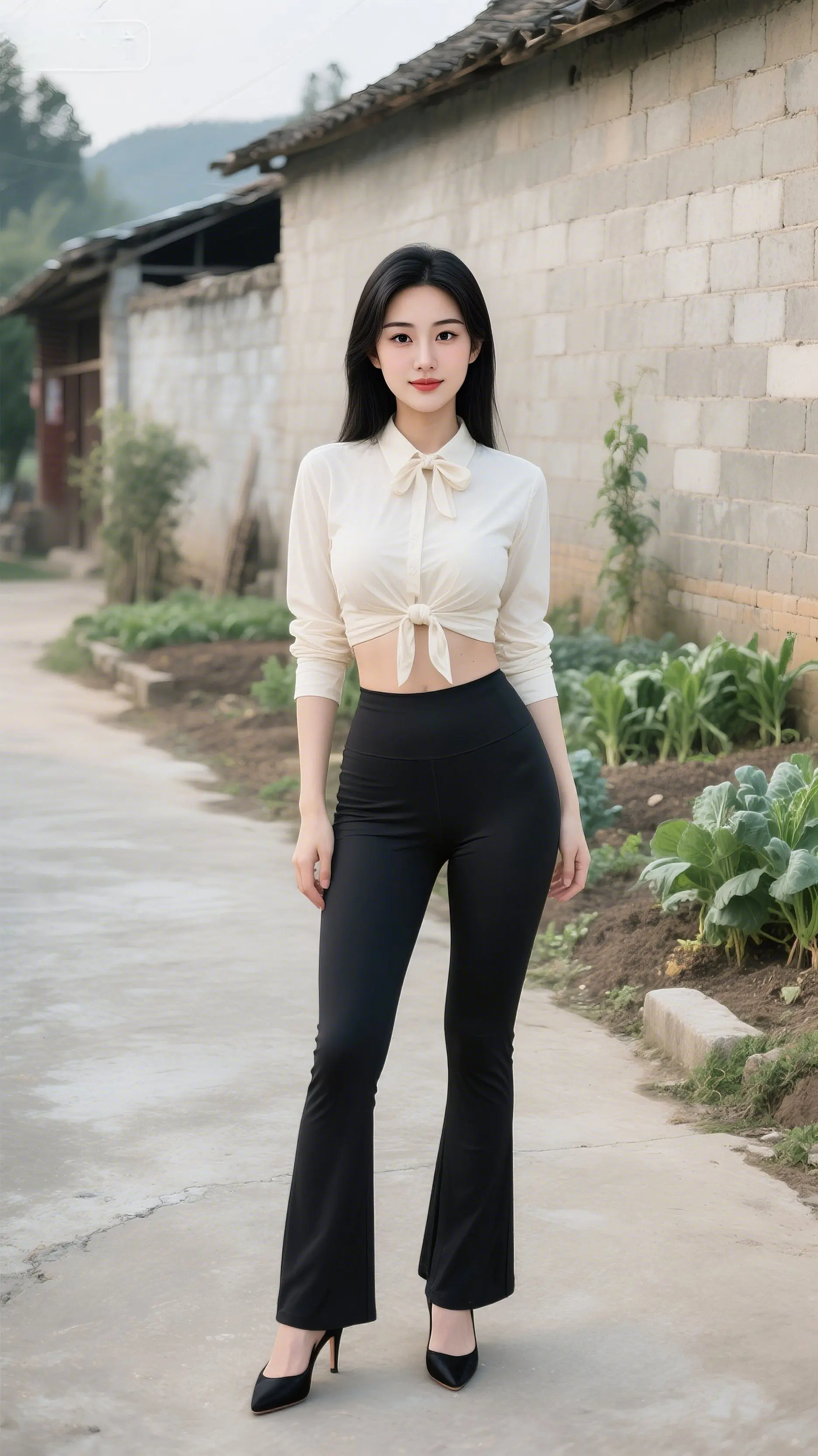 回村也要精致住!白衬衫+喇叭裤,在老家的小路上走出T台感~ 你们回村会穿这么“显眼”吗?😎