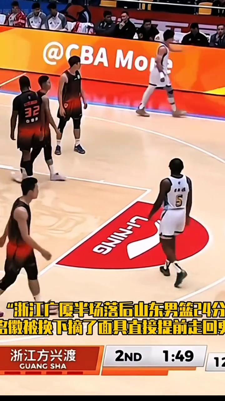 浙江半场落后24分,孙铭徽提前回更衣室。 浙江广厦半场落后山东男篮24分,孙铭徽被换下摘了面具直接提前走回更衣室。