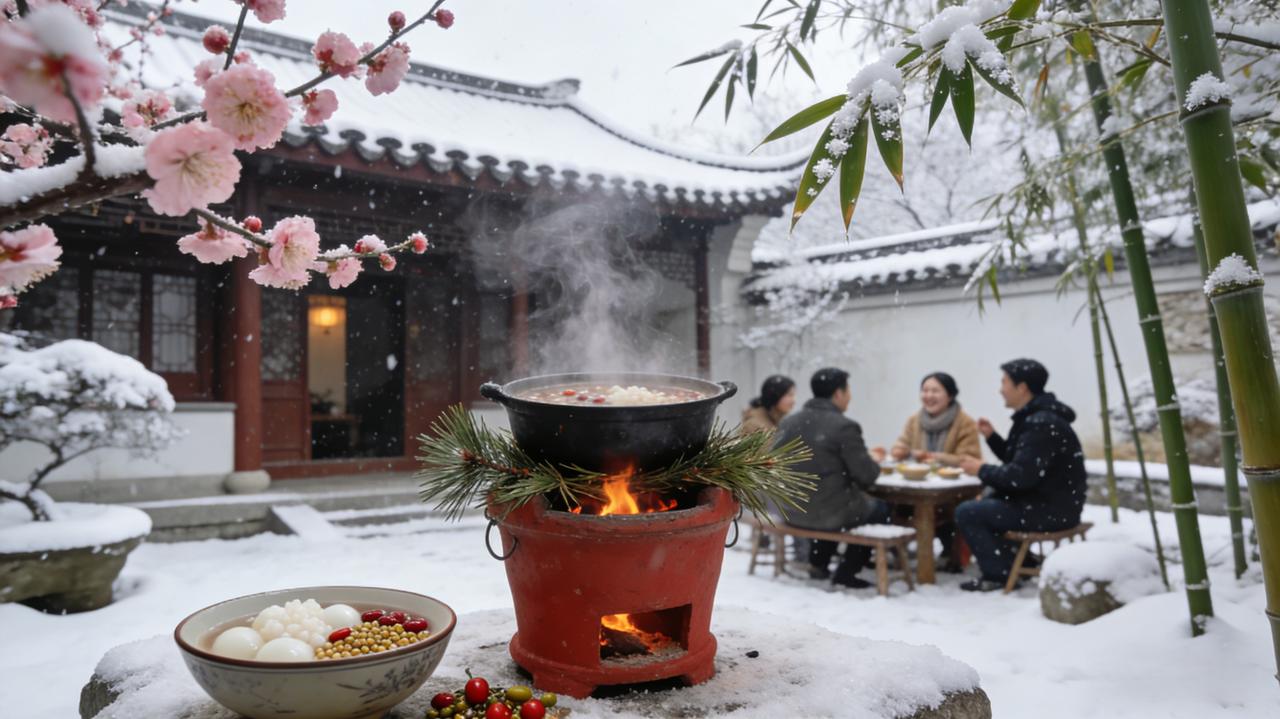 鹧鸪天・腊八 晓色初融雪半消, 瓦檐香绕腊八粥熬。 红泥小火煨松叶, 白玉盈珠拌黍椒。 梅蕊绽, 竹枝摇, 岁寒滋味入羹瓢。 围炉闲话年将近, 静待春风拂柳条。 今日腊八