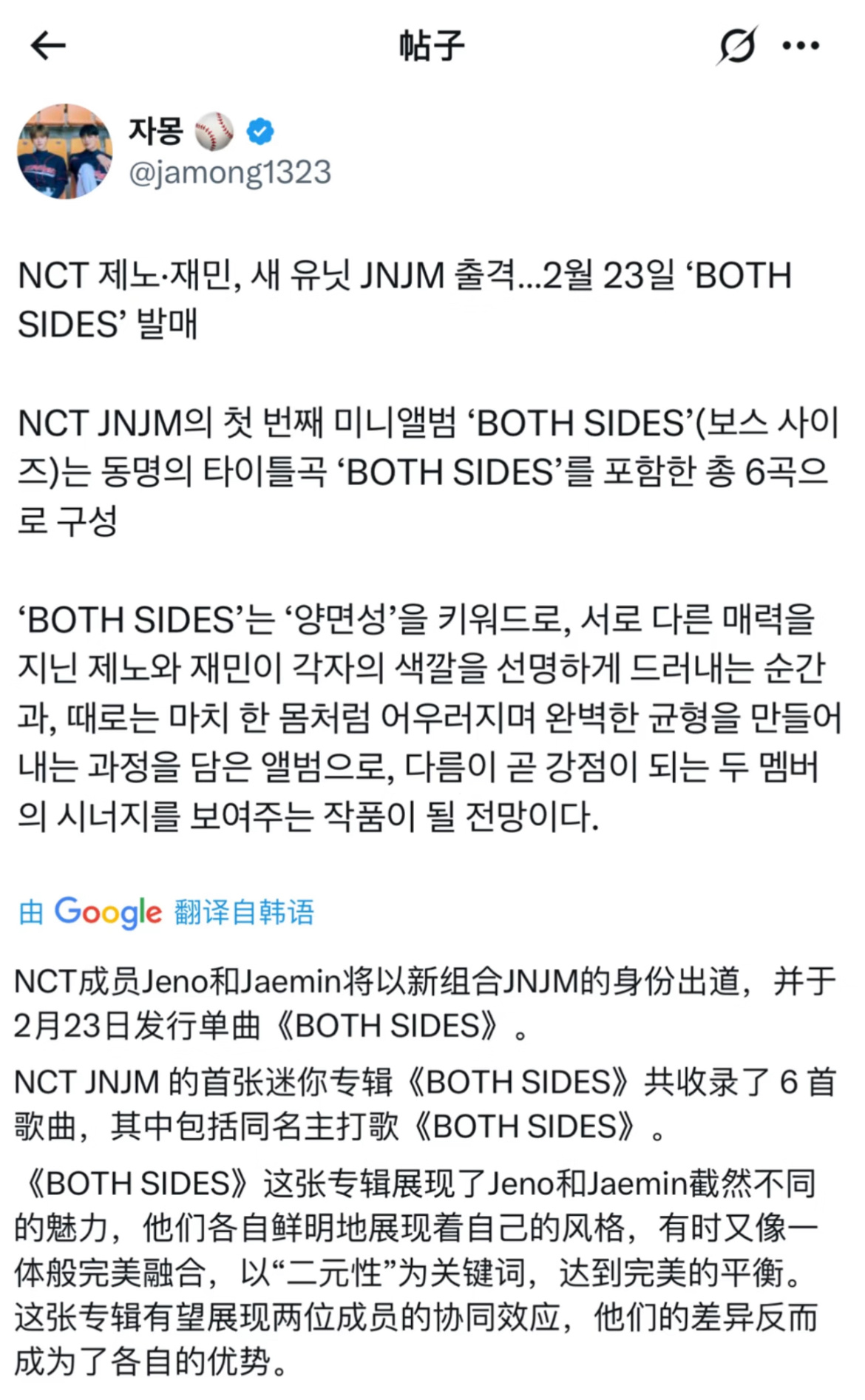 李帝努罗渽民小分队将出道 李帝努&罗渽民将于2月23日以全新小分队NCT JNJM推出新专辑《BOTH SIDES》正式出道!