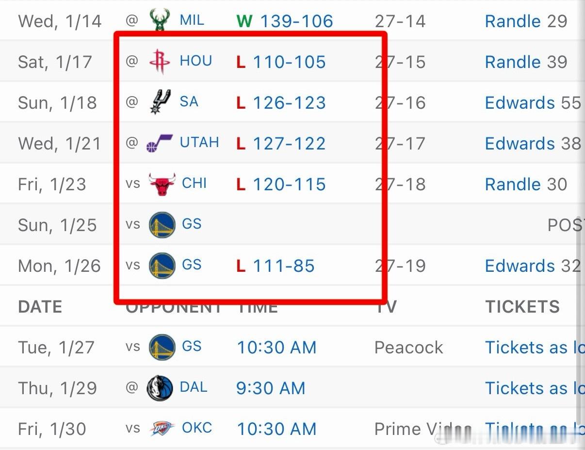 森林狼自从输给火箭之后,已经5连败啦勇士vs森林狼nba常规赛