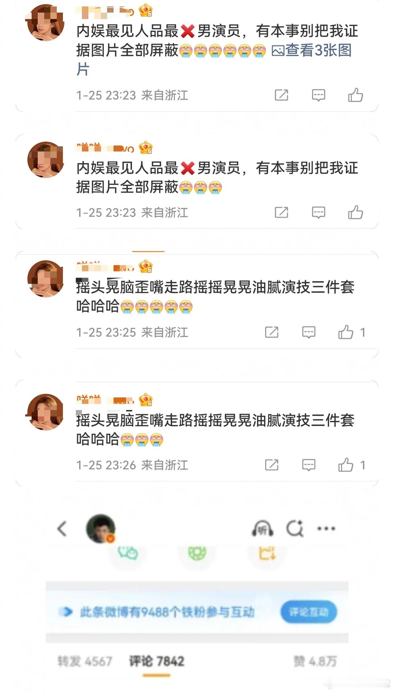 昨天有个人在代旭收官博下大骂几百条,从网上10点骂到12点多,今天早上7点又再接