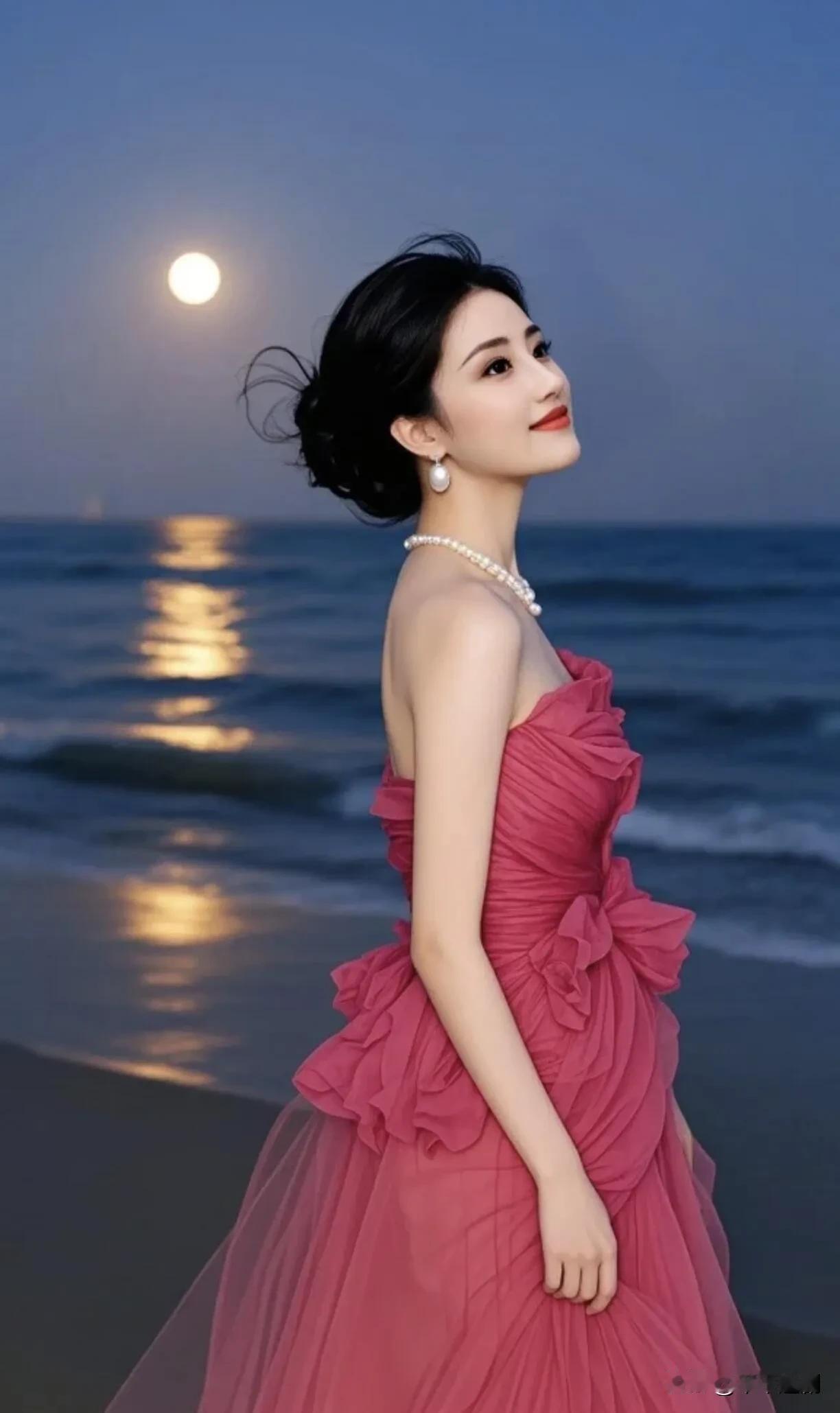 玫红纱裙漾着柔润褶皱,珍珠饰件在月色里轻闪。抬眼望向夜空时,把海边月夜的浪漫与明艳都揉进了这帧画面里。 黑裙氛围感 海边氛围感长裙 蓝色法式长裙