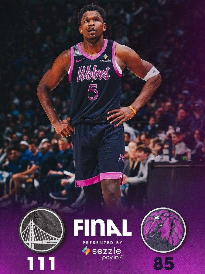 狼狈不堪!#勇士战胜森林狼# 在经历了胶着的上半场之后, 第三节勇士开启了暴走模式, 全队多点开花, 单节轰出38-17的超级攻击波, 让比赛瞬间失去了悬念! 没了巴特勒, 就连库明加都不打, 对勇士的进攻来说, 影响还是很大的, 但是“勇三疯”传统依旧, 极致的小, 极致的快, 极致的准, 让疯狂输出可以持续, 让疯狂输出势不可挡, 但这真的可以场场延续吗? 森林狼的表现让人失望, 全队25次失误, 被对手抢断了20次, 即便爱德华兹拿下32分, 也依旧无法挽回颓势。 森林狼已经5连败了, 他们上一次遭遇5连败还是在2022年; 排名也掉落到西部第7, 如果明天再输勇士, 真得要被对方追上了啊! 明天两队还将继续对决, 剧本会不一样吗?