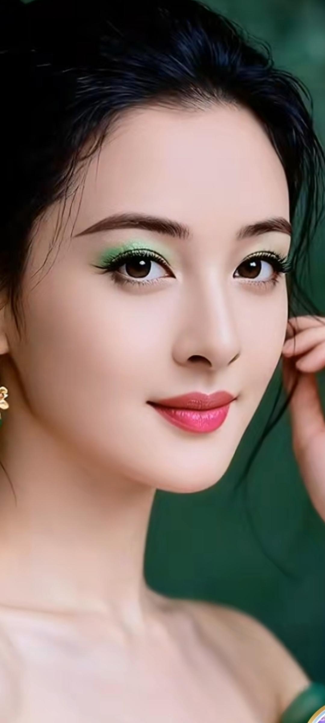 惊艳的东方美人,黑发红唇,古典优雅。