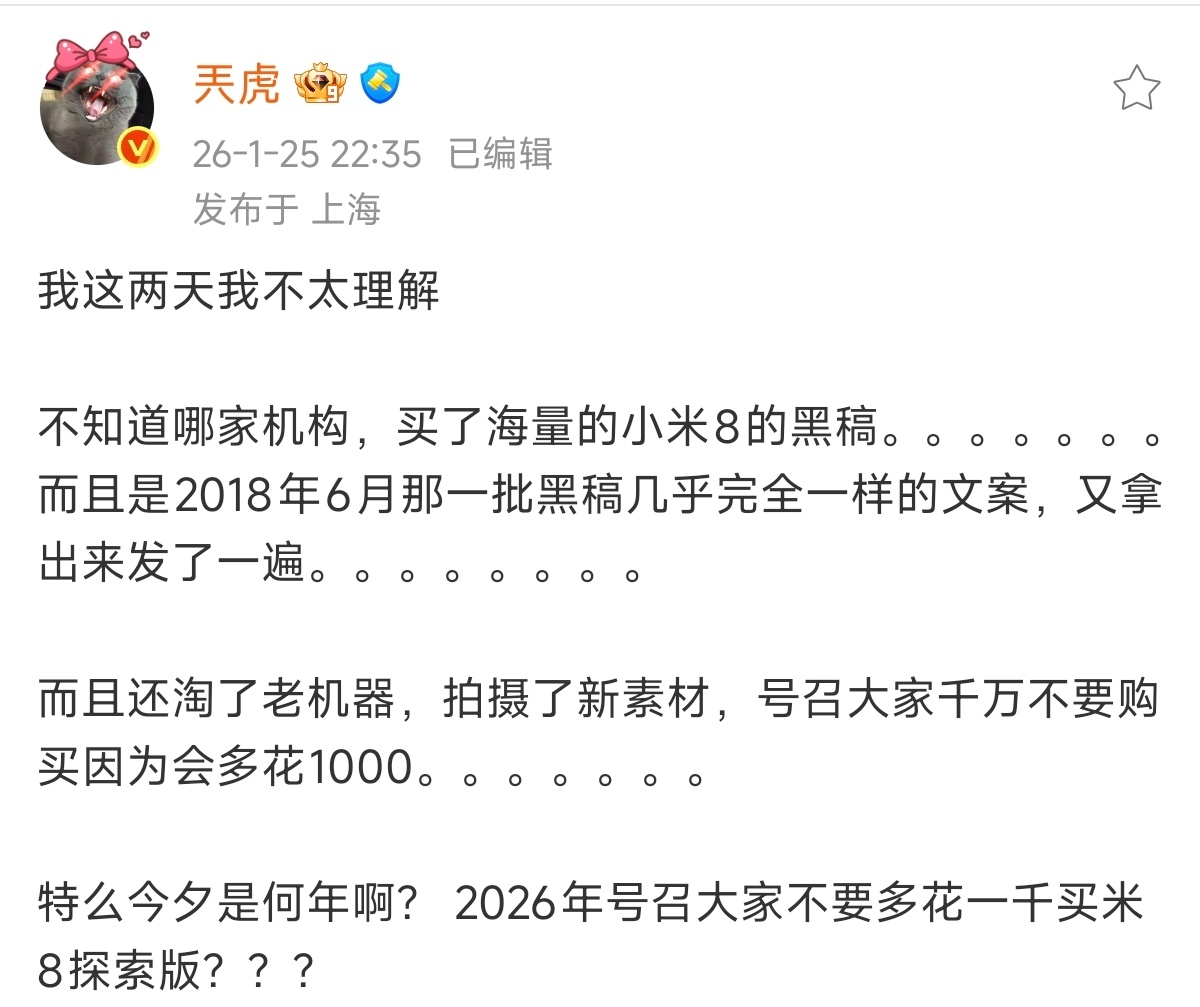 昨天也有人跟我聊这个事情,问我抖音那边刷小米8探索版卖贵了以及一堆小修车店表示不接小米汽车维修单对小米有没有破坏力如果是去年我会说没有,太弱智了但是在今年,我会说,只要经费足够高,是有的就比如之前的“理想汽车乱停车”,我寻思大车不好停车,停的不好正常,乱停车也不是理想一家车主这么干。再说了,车主行为和车企有什么关系?后来全网都在理想车乱停车狂欢,每一台乱停车的理想车都要被发网上让人锐评。时间久了还真就对理想品牌形象造成了很大的影响我才意识到,只要经费足够多,全网饱和式发,哪怕再低级的言论也有杀伤力 最关键的是,企业还不好辟谣比如一堆第三方小修车店跳出来说我们以后不接小米汽车维修订单了。你车企怎么说?我们售后好不需要去三方店修?所以只能寄希望于中央对平台进行治理了,到底是什么组织在给这些视频投流?