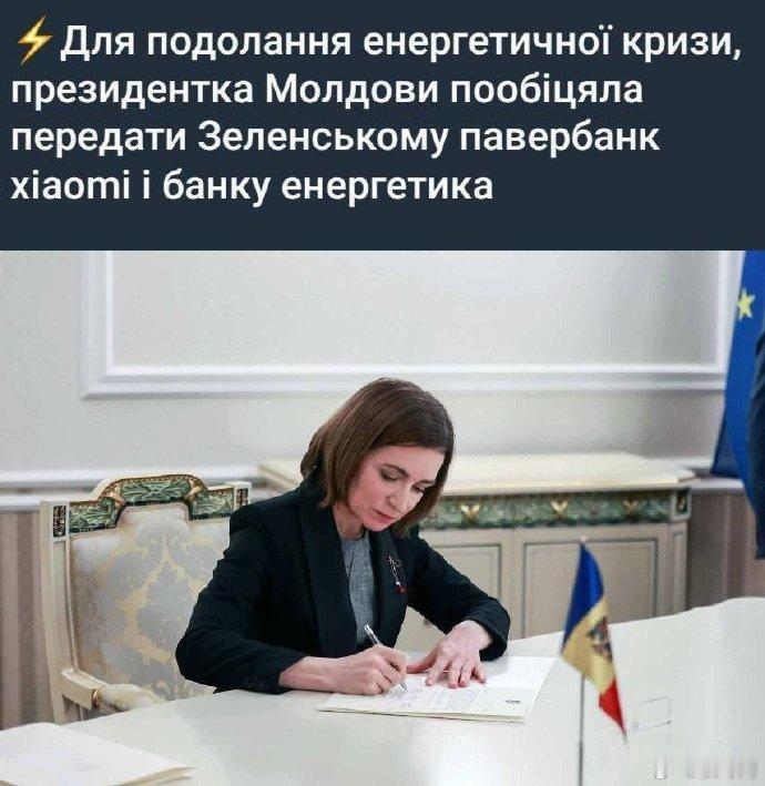 据媒体报道,为了克服能源危机,日前摩尔多瓦总统承诺向泽连斯基转交一个小米充电宝和一罐能量饮料 。