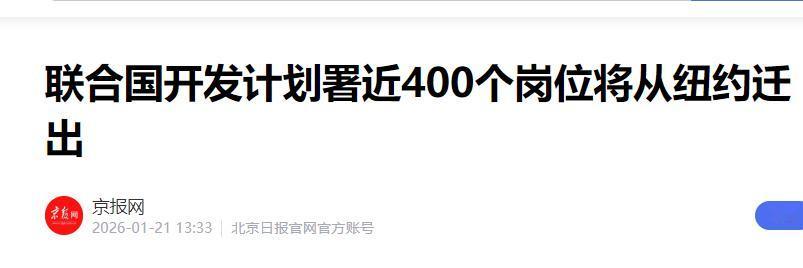 联合国终究还是出手了!就在特朗普还在做着“唯我独尊”的美梦时,联合国突然宣布要“离家出走”,加速搬离纽约!   当地时间2026年1月19日,联合国开发计划署发布公告,明确将纽约总部的400个职能岗位整体迁移至欧洲。   其中300个岗位落户德国波恩,剩余100个岗位进驻西班牙马德里。这绝非简单的办公地址变更,更敲定了该机构未来数十年的运作格局与发展方向。   运营成本高企是此次调整最直接的原因。据机构内部测算,在波恩维持同等规模的办公配置,整体开支比纽约低42%。   通过这次岗位迁移,开发计划署每年预计能节省1.8亿美元行政经费。   这笔资金将彻底告别纽约昂贵的写字楼租金账单,全部投入到全球各地的发展项目中,切实服务于贫困地区帮扶、可持续发展推进等核心工作。   财务压力背后,藏着更深层的战略考量。截至2026年1月中旬,美国拖欠联合国常规预算及维和摊款的总额已达6.17亿美元。   对任何一个国际组织而言,若地理布局和资金来源长期绑定单一国家,其独立履职能力必然会受制约。   此次撤出部分岗位,本质上是为机构寻找更稳定、更中立的生存与运作空间。   波恩与马德里两座接收城市,各有明确的功能定位与优势。波恩早已是联合国机构聚集地,目前已入驻20多个联合国下属分支机构,在可持续发展领域形成了成熟的人才储备与协作网络,能快速承接核心职能。   马德里则依托语言与文化优势,可更高效地对接拉丁美洲地区的业务,降低跨区域协作成本。加之现代数字化办公技术的普及,这种跨国分散办公在技术层面已无阻碍。   这种分布式布局,为国际组织构建了更强的抗风险能力。   即便纽约总部因政治博弈或行政干预陷入被动,欧洲的执行部门仍能正常开展工作,保障项目推进与职能落地不受影响。   将技术支援、项目评估等关键职能外迁到规则更稳定的区域,标志着多边机构正从权力集中的运作模式,向灵活高效的网络化协作转型。   当前全球治理正面临多重挑战:部分势力企图以资金优势换取国际组织话语权,甚至谋求永久席位,试图将多边平台异化为私利工具。   同时,针对委内瑞拉局势等议题的虚假信息扩散,也持续冲击国际秩序与信任基础。开发计划署的这次岗位调整,正是对主权平等原则的实际践行与维护。   国际组织的合法性,终究源于其提供全球公共服务的能力与担当。   联合国秘书长古特雷斯曾明确表态,多边主义不可交易,这一立场在此次调整中得到了充分体现。   400个岗位的迁移,清晰传递出多边机构摆脱单一国家行政束缚、坚守独立履职初心的决心。   纽约作为全球唯一外交中心的格局,正在被逐步打破。未来的全球协作,将不再局限于某个固定地理坐标,而向更多区域节点扩散。   这次行政调整,预示着“单极总部”模式的终结,也为多边机构应对单边主义干扰提供了务实路径,通过分散功能布局,筑牢履职独立性的根基。   真正的全球合作,本就该扎根于每一个项目现场、贴近每一处需要帮扶的角落。   开发计划署的这次位移,让多边机构离服务对象更近一步,也让其在应对各类外部压力时更有底气。这不仅是一次机构改革,更是多边主义在复杂国际环境中坚守与突围的生动实践。 信息来源:《联合国开发计划署近400个岗位将从纽约迁出》,京报网,2026年1月21日。
